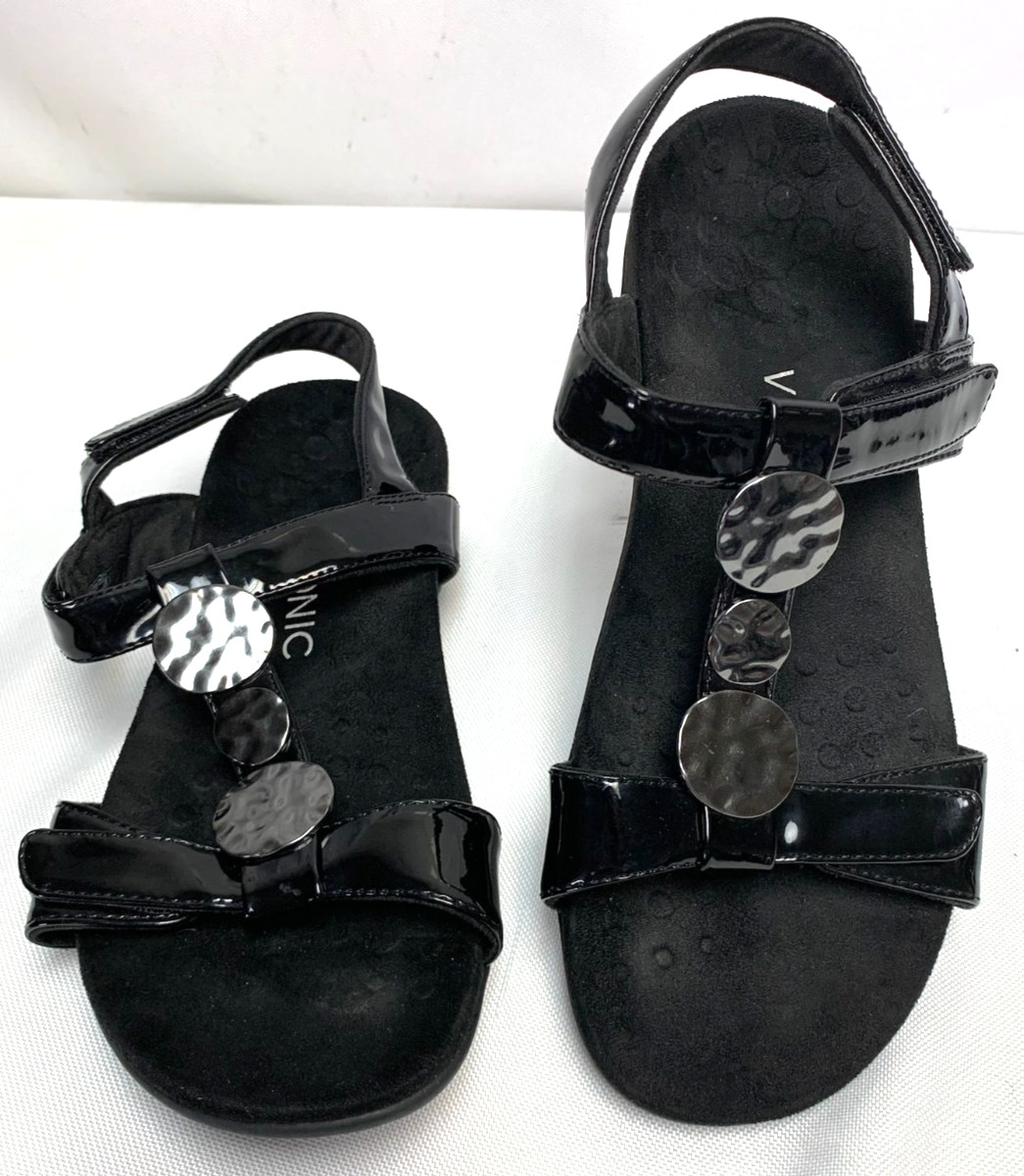 Vionic Farra Patent Black Silver Comfort Sandals Adjustable Straps Size 8