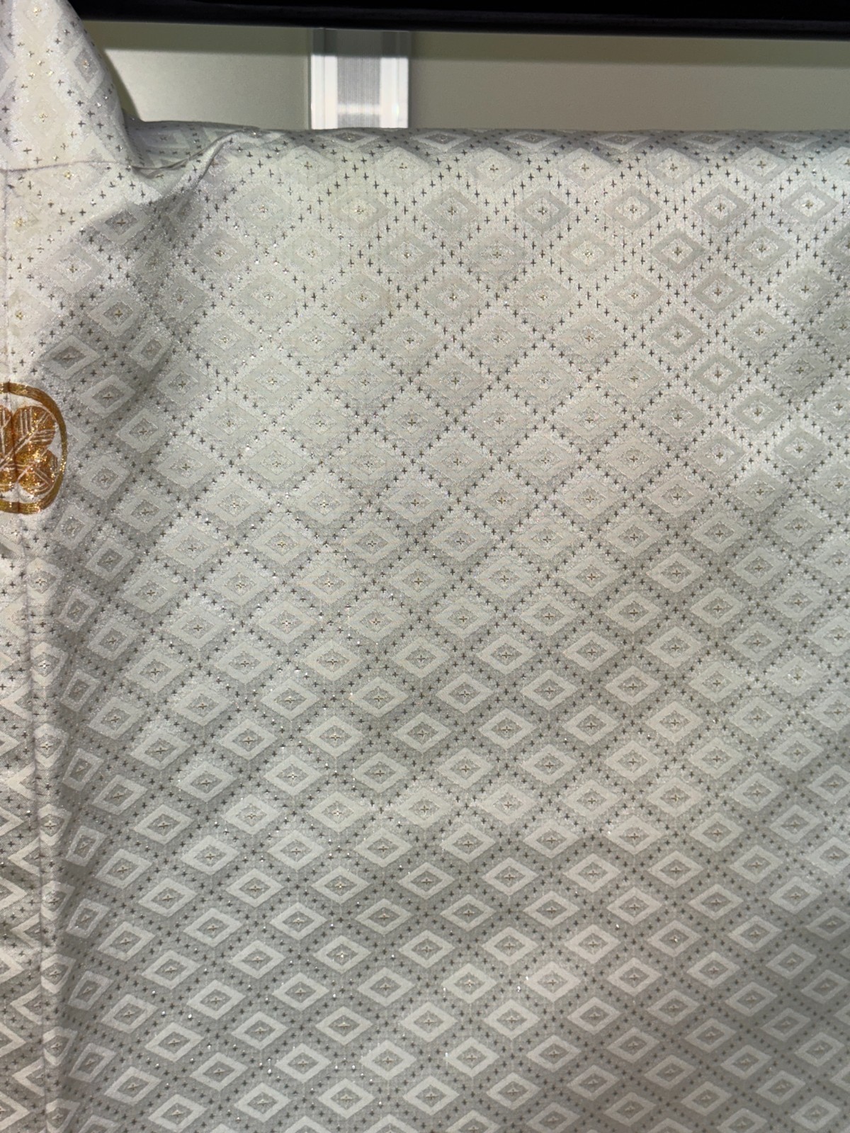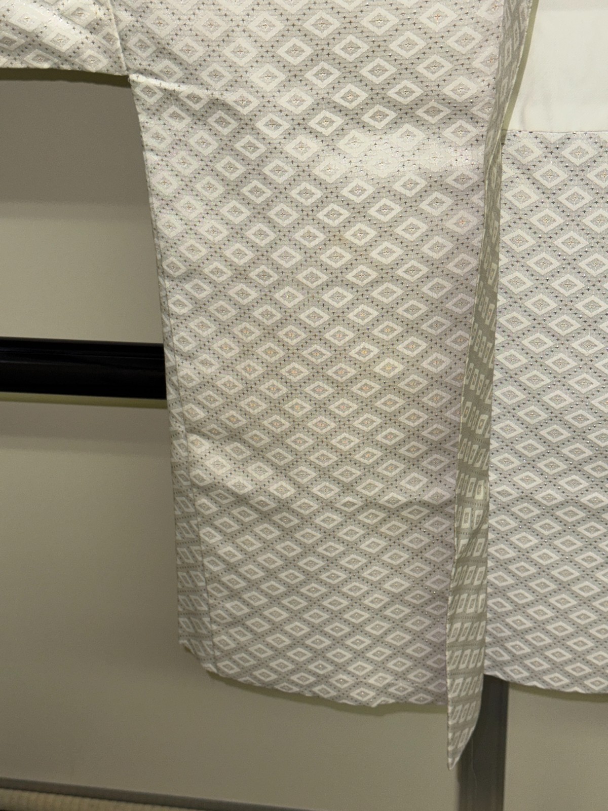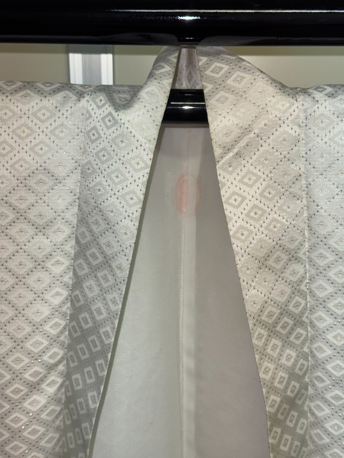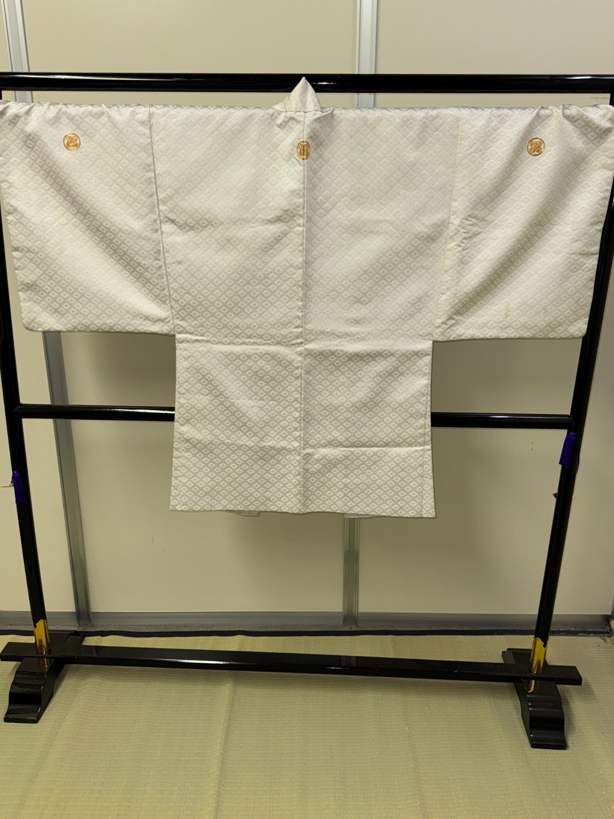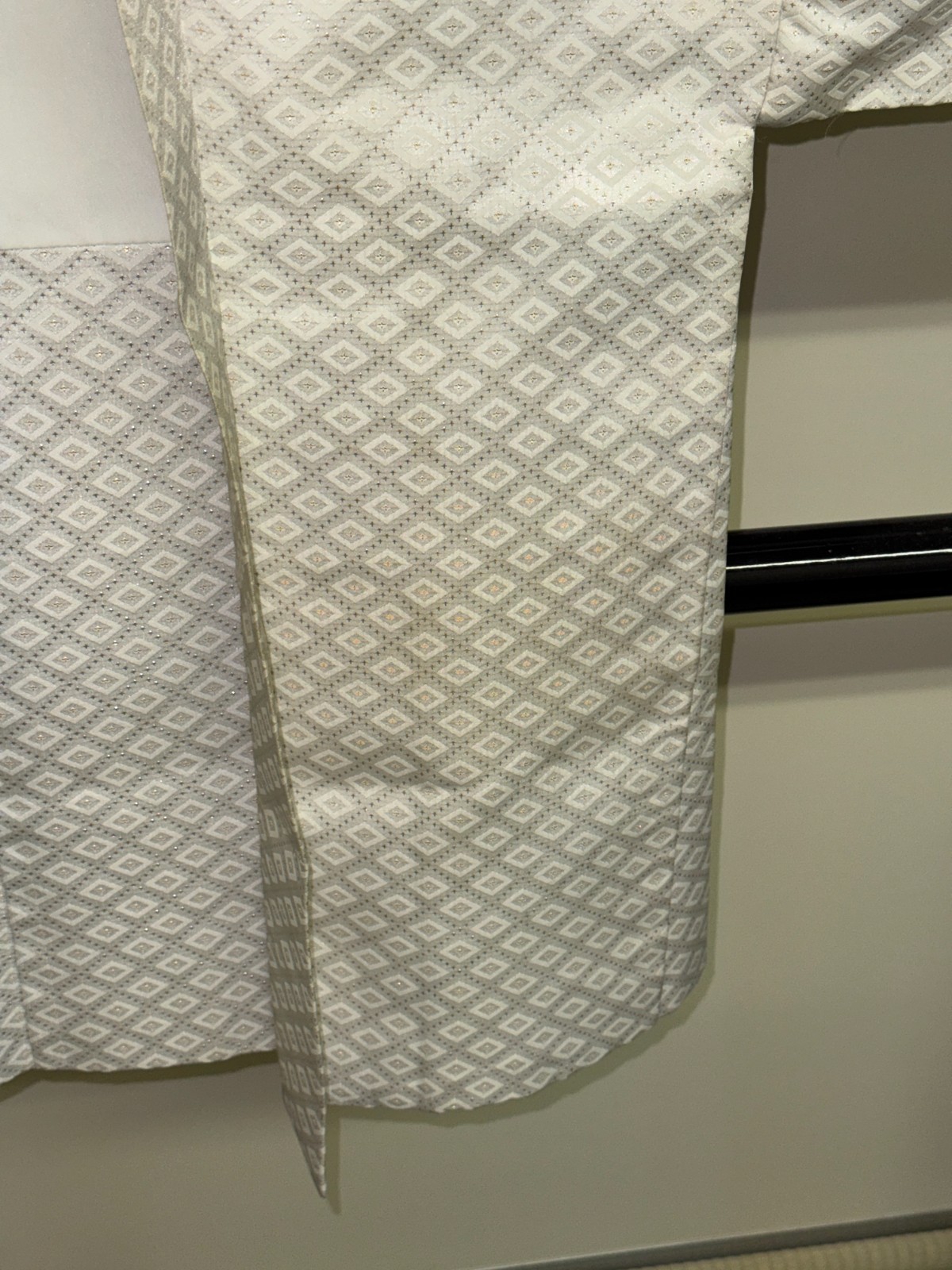 как выглядит Japanese Vintage Kimono Haori Jacket Polyester White Family Crest Dirt 39in фото