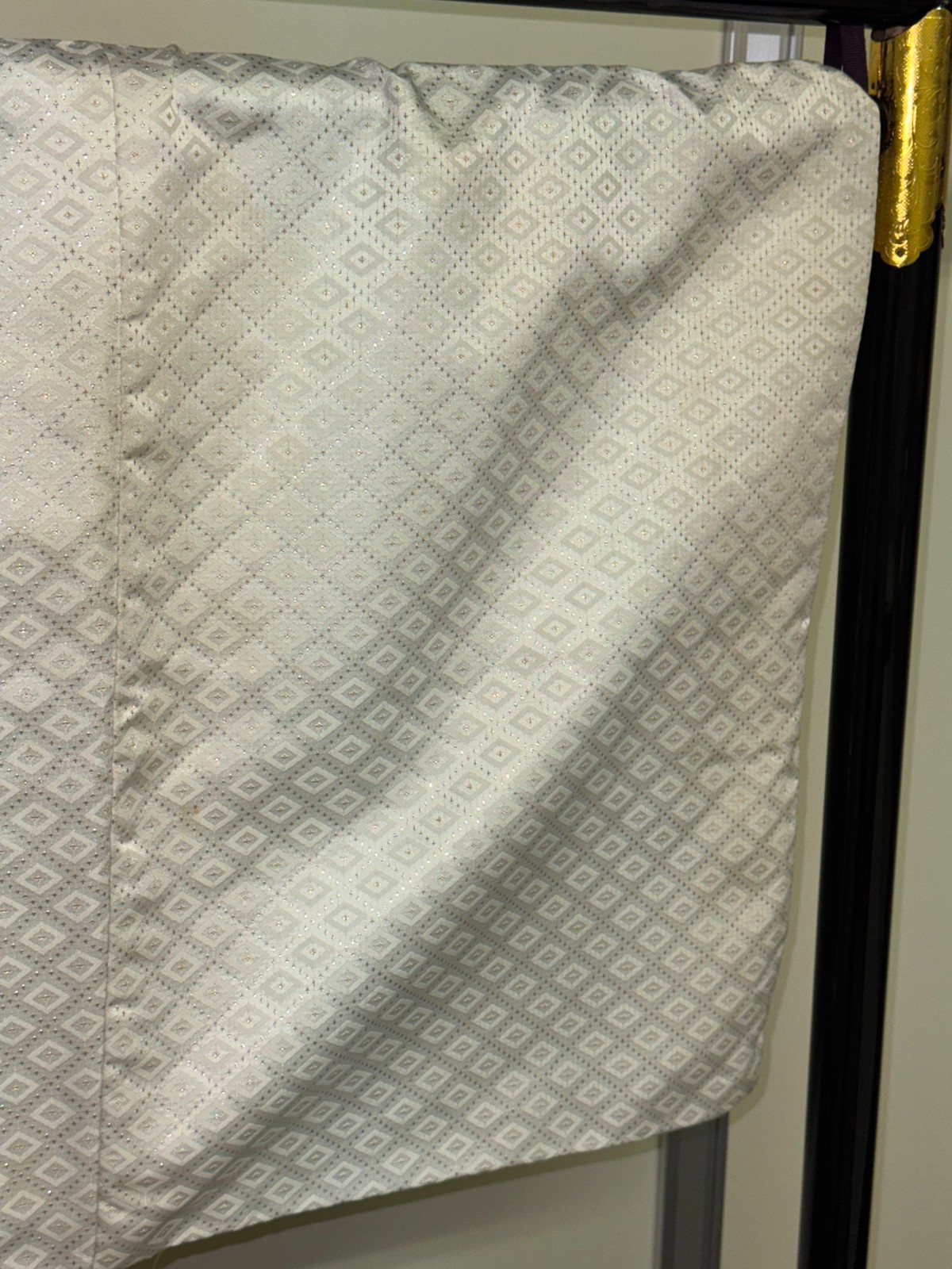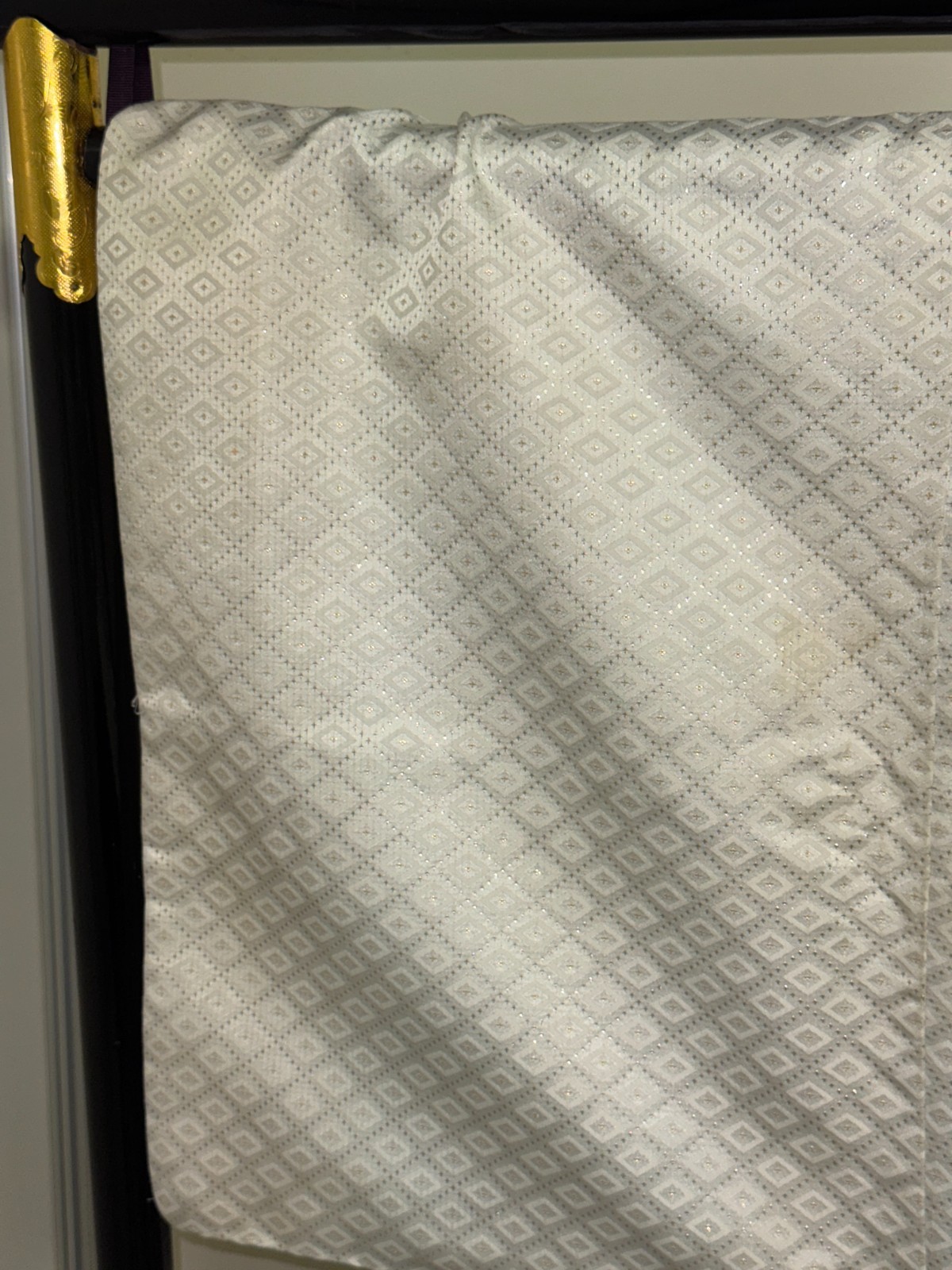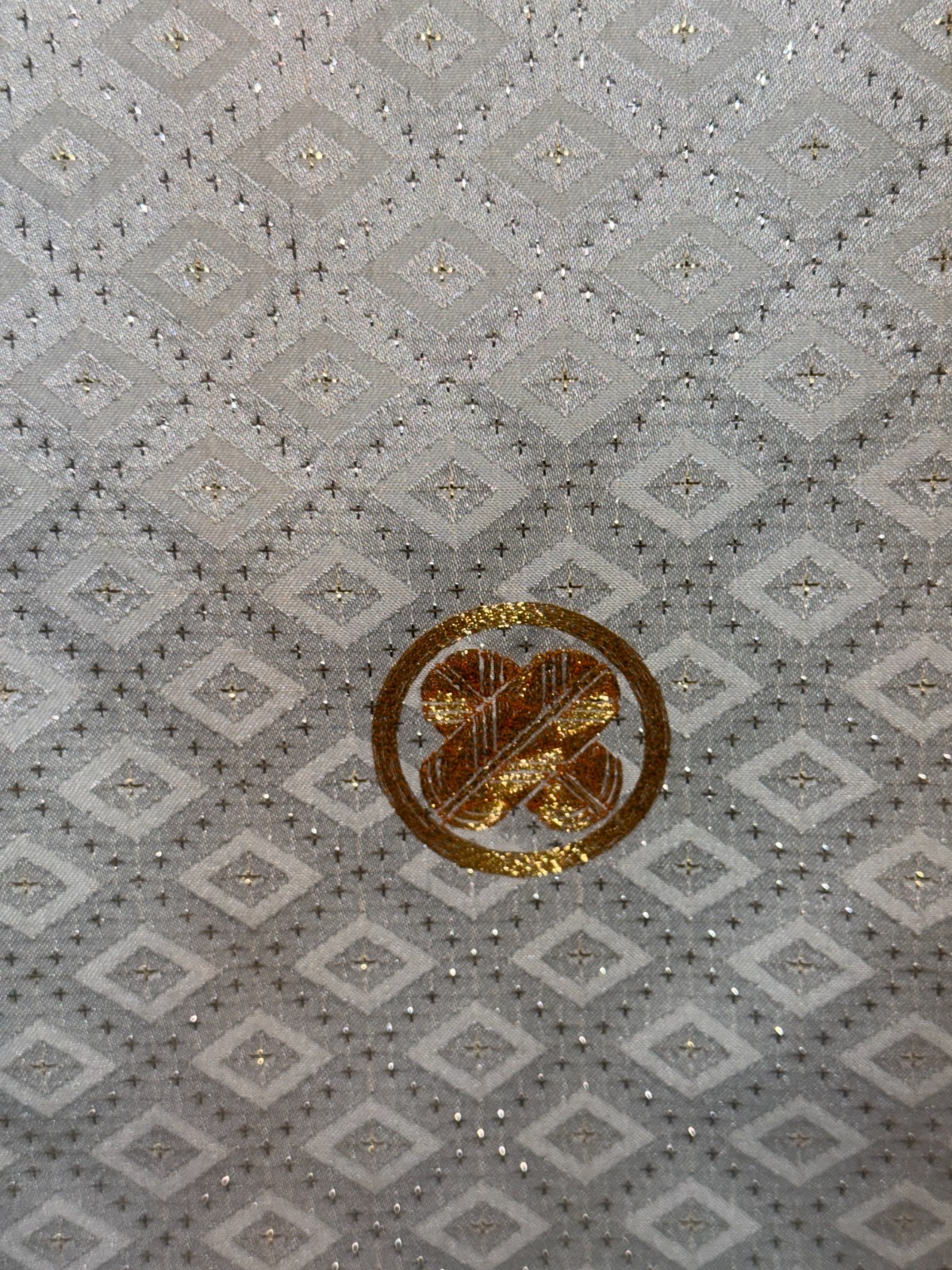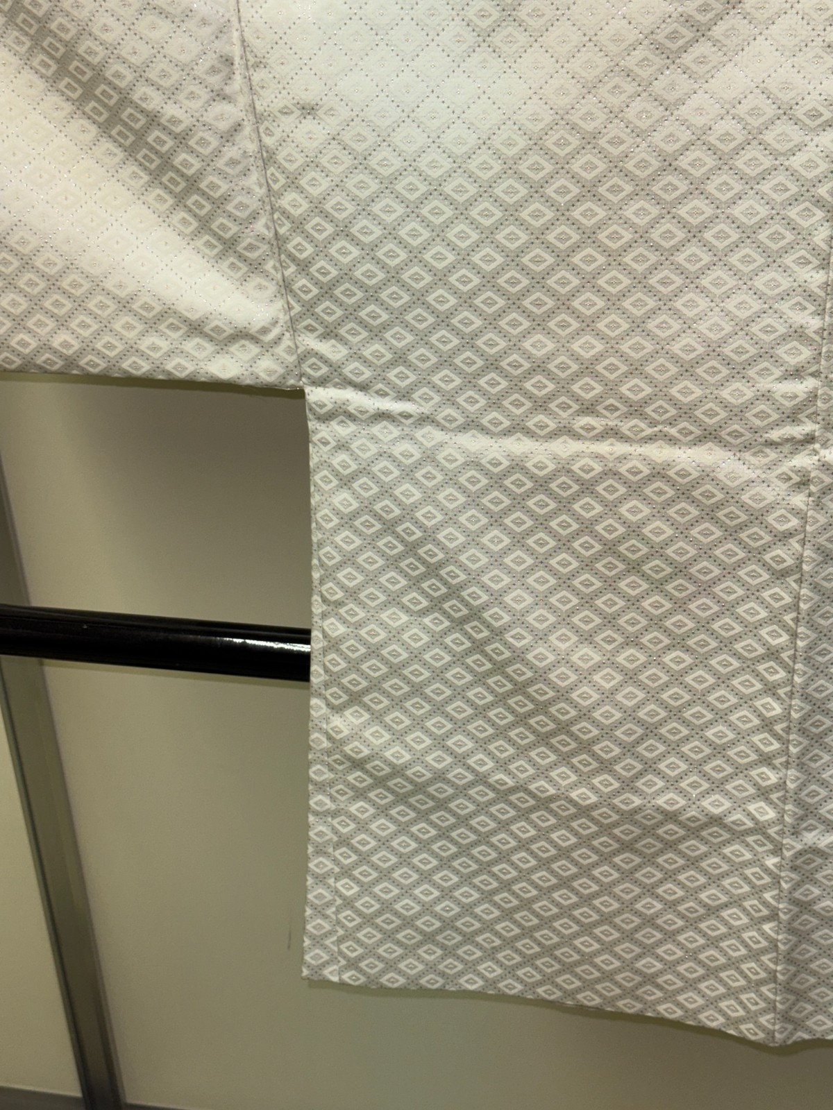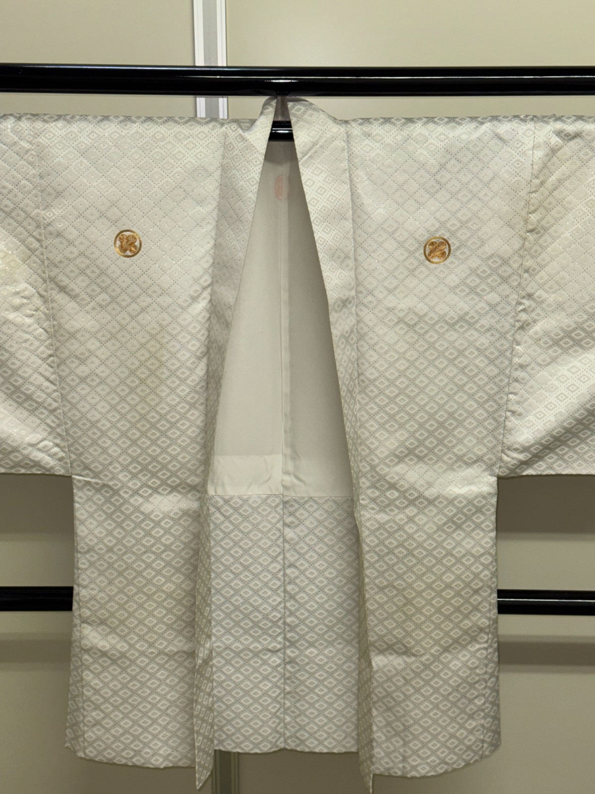 Japanese Vintage Kimono Haori Jacket Polyester White Family Crest Dirt 39in