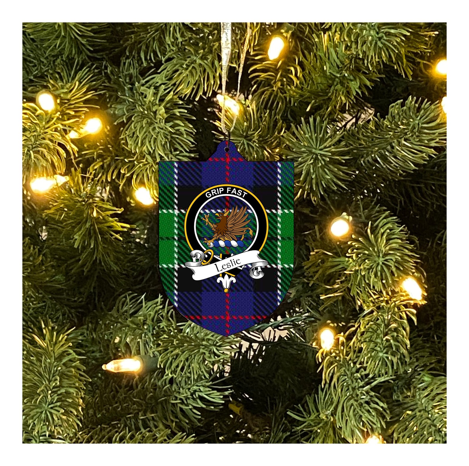 Leslie Family Crest Christmas Ornament - Single Sided Metal Christmas Ornament