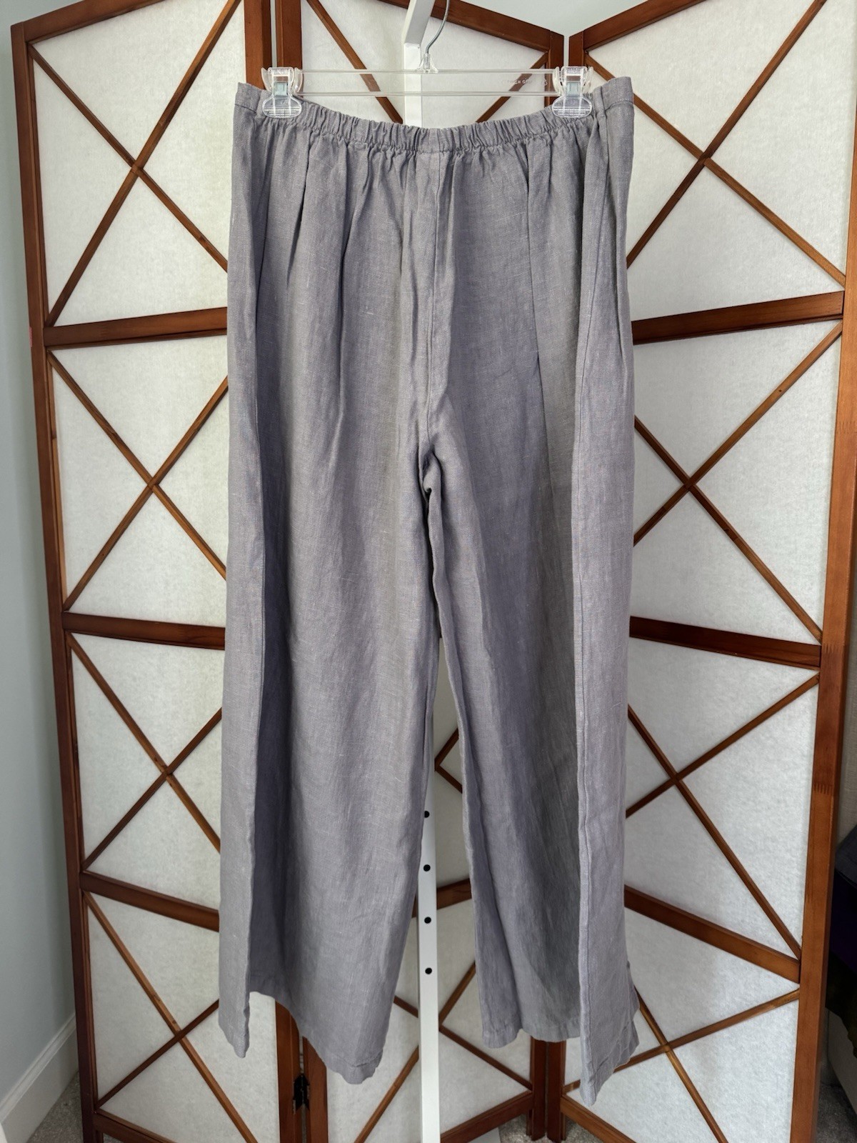 как выглядит BRYN WALKER Linen LONG FULL PANT UFFIZI Gray Palazzo Wide Leg 1X фото
