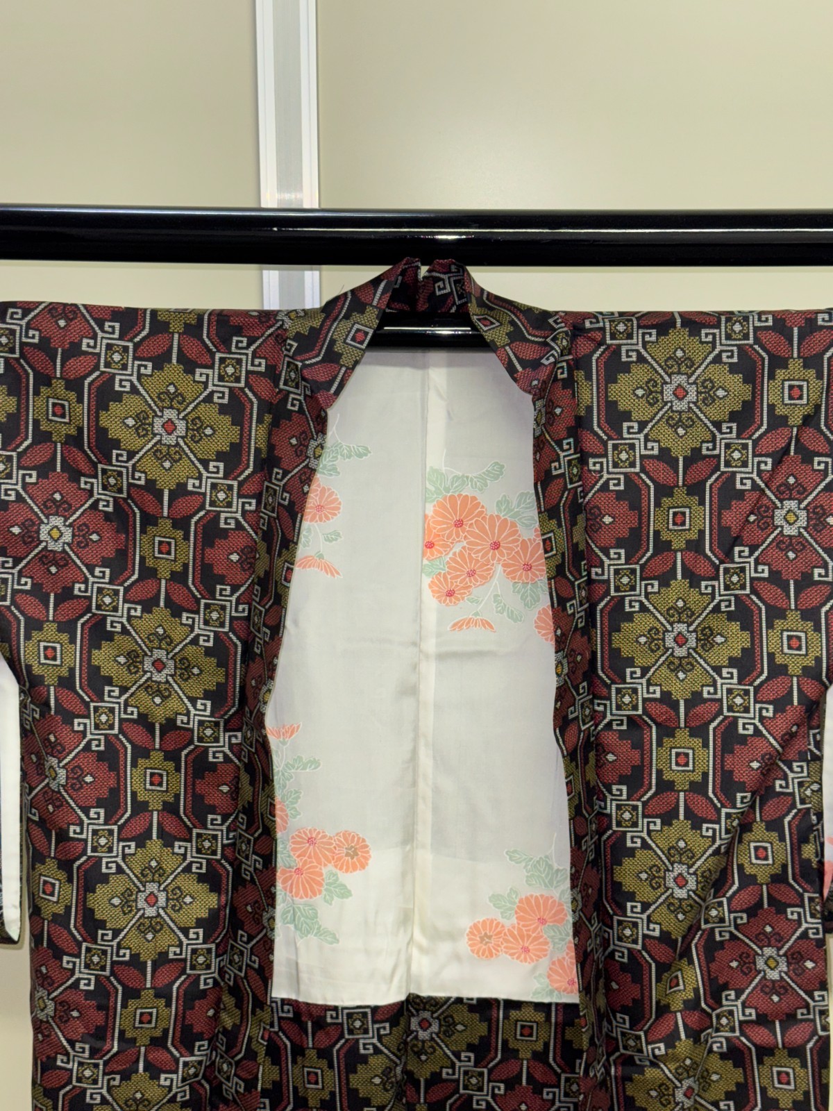как выглядит Japanese Vintage Kimono Haori Jacket Silk Black Oshima Tumugi Traditional 31 in фото