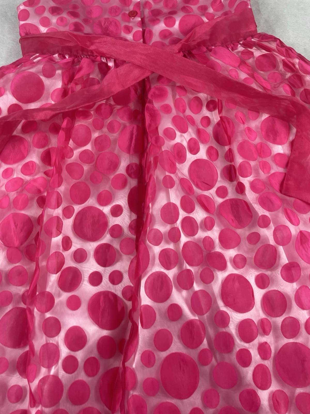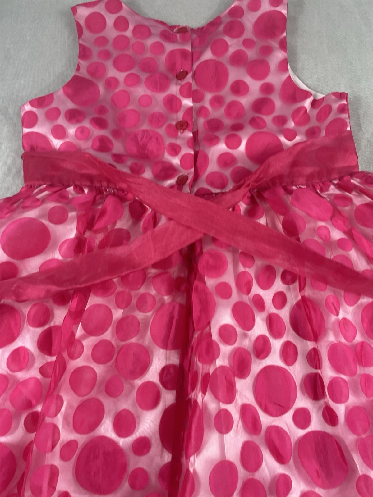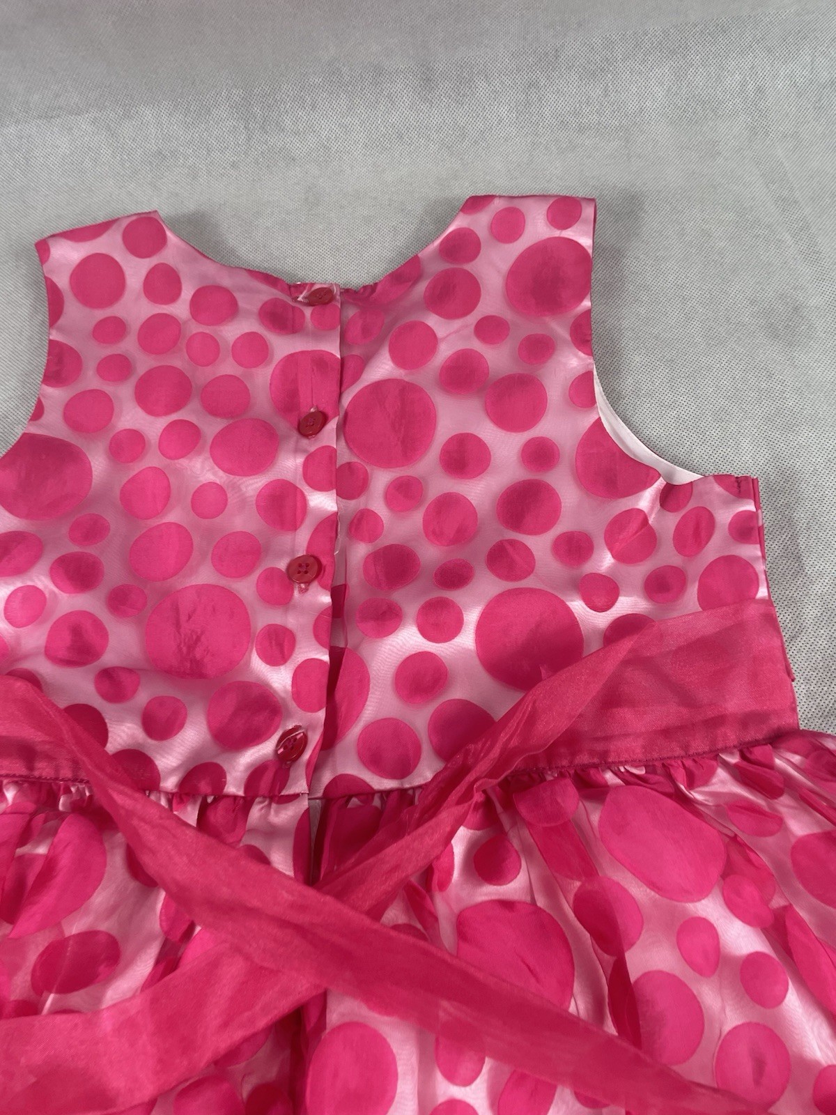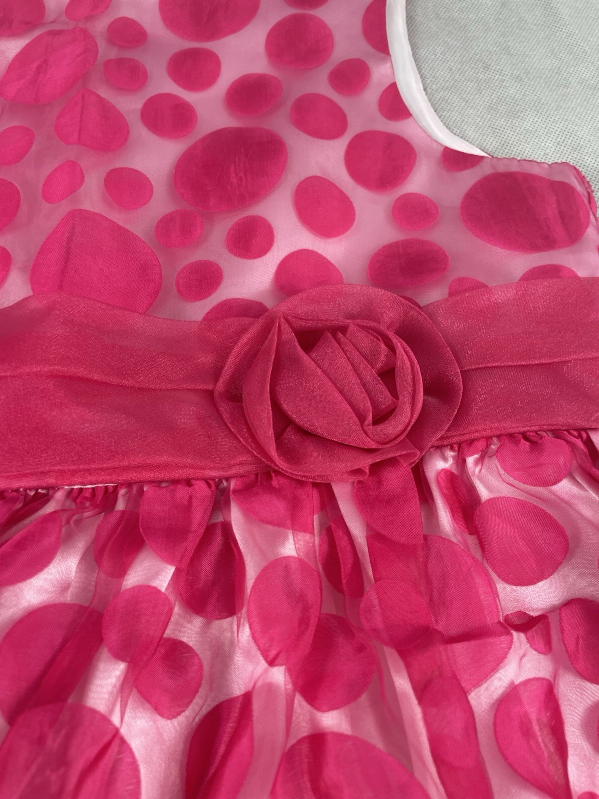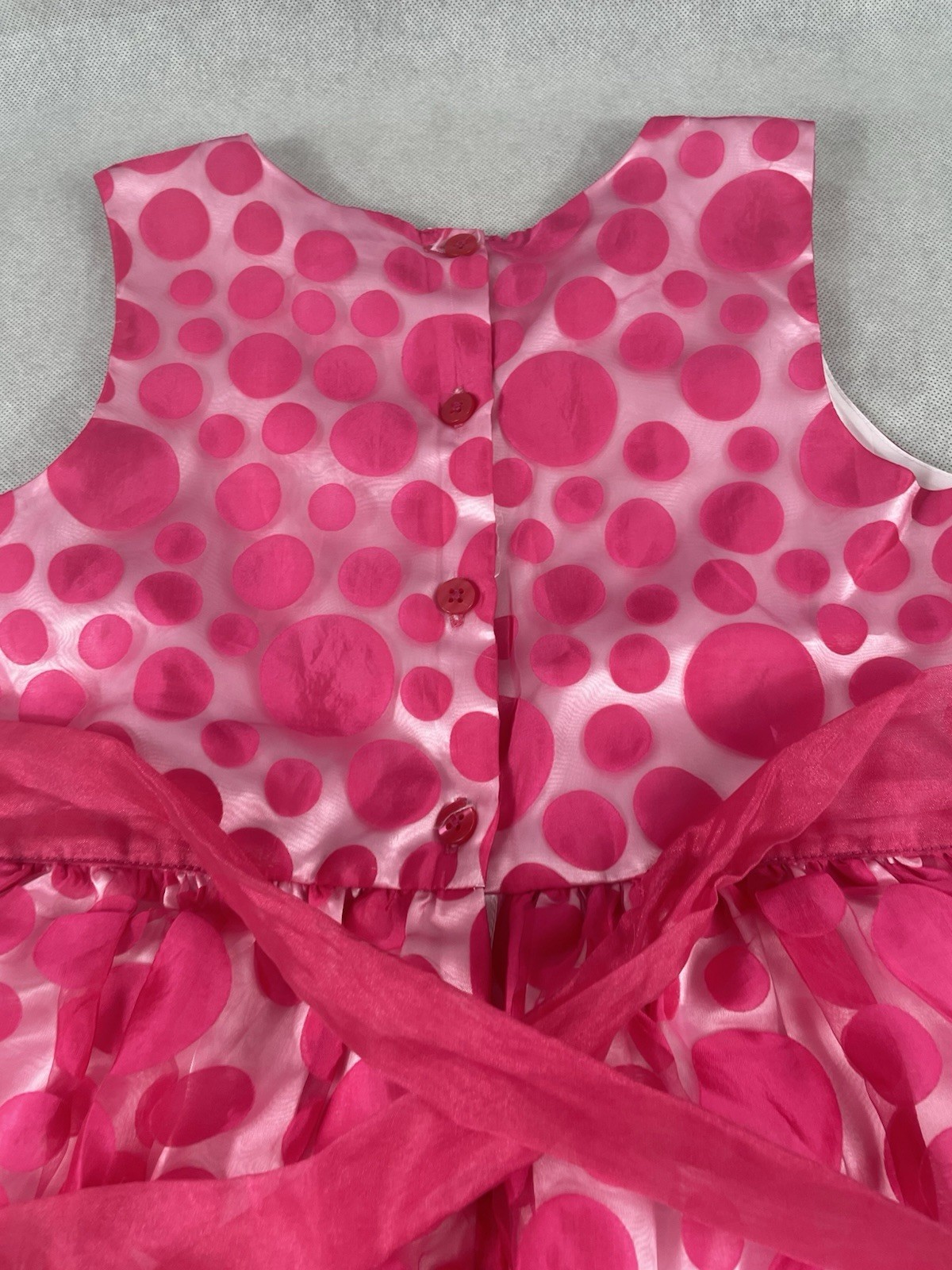 как выглядит Girls Pink Polka Dot Organza Party Dress with Flower Waist Detail фото