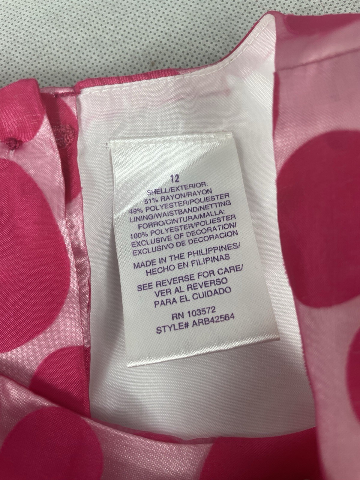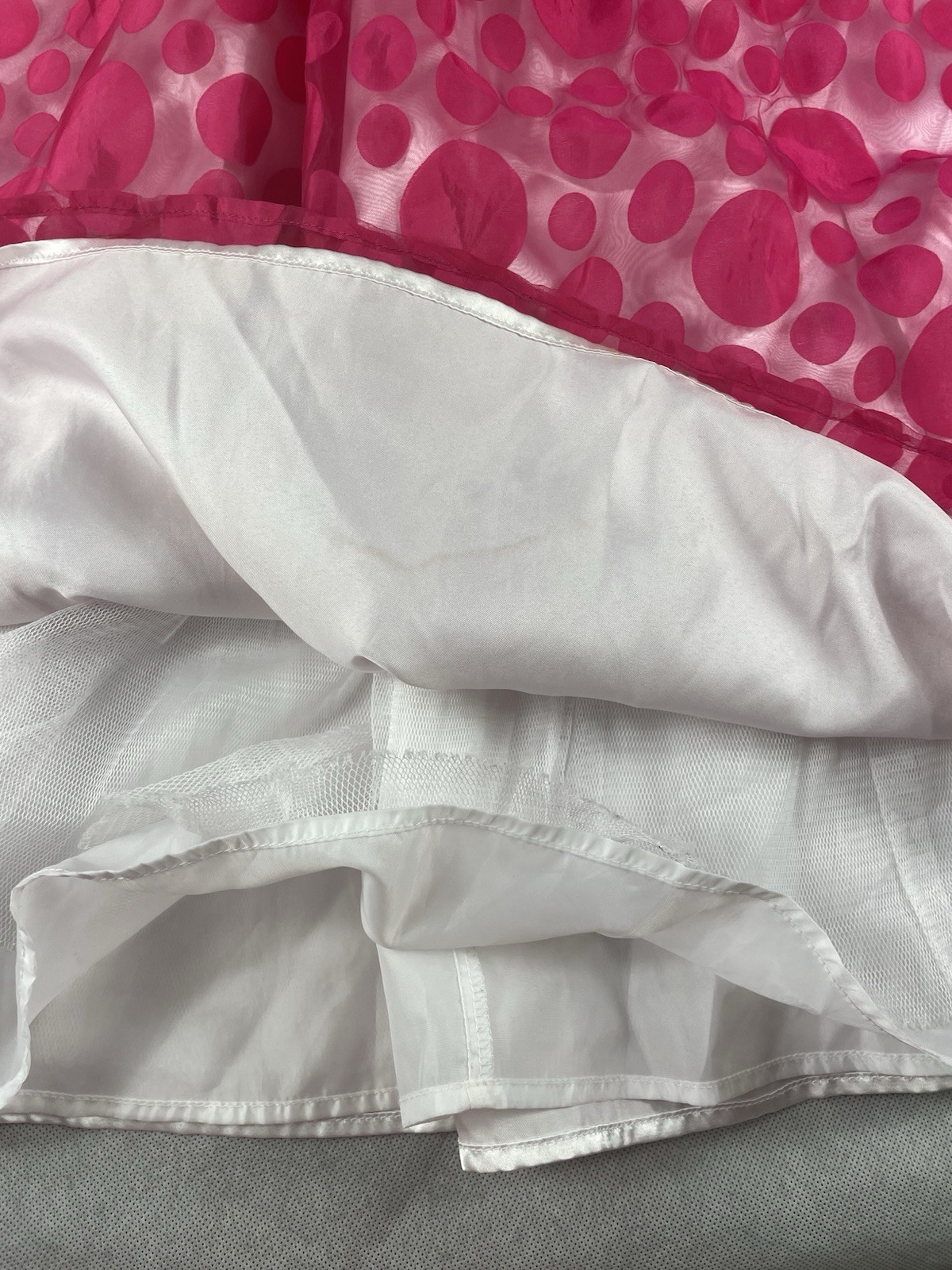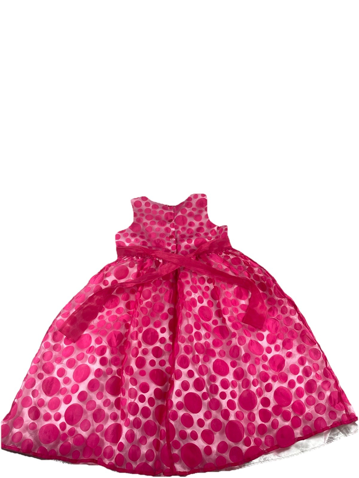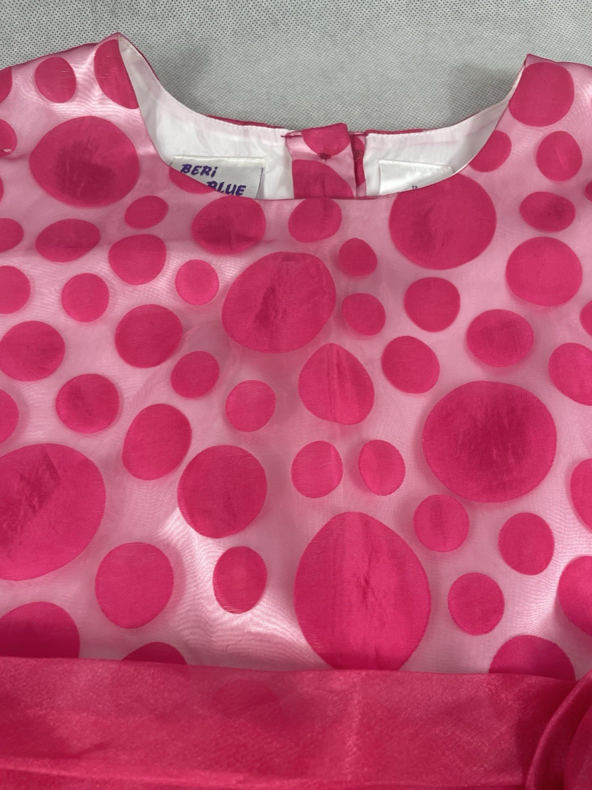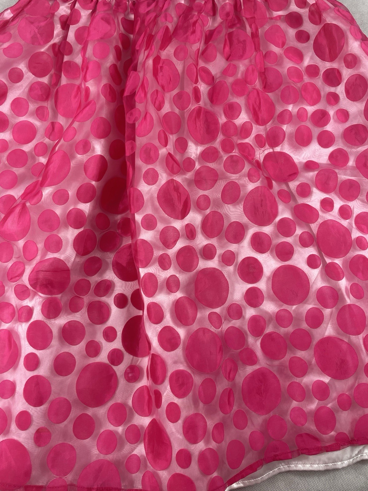 как выглядит Girls Pink Polka Dot Organza Party Dress with Flower Waist Detail фото