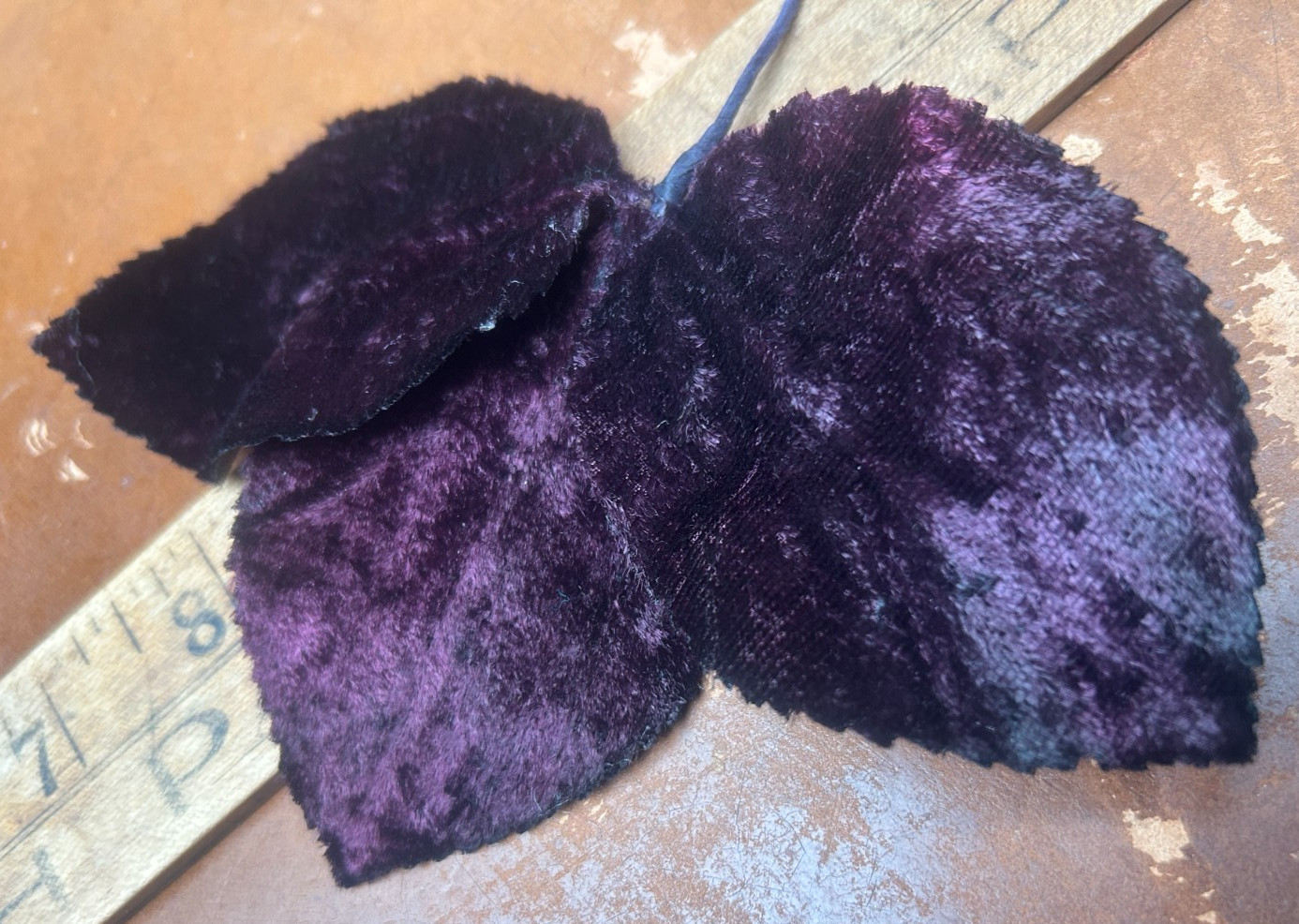 vintage millinery 1940s velvet 2 1/8x3 leaves aubergine 1 tri spray Japan