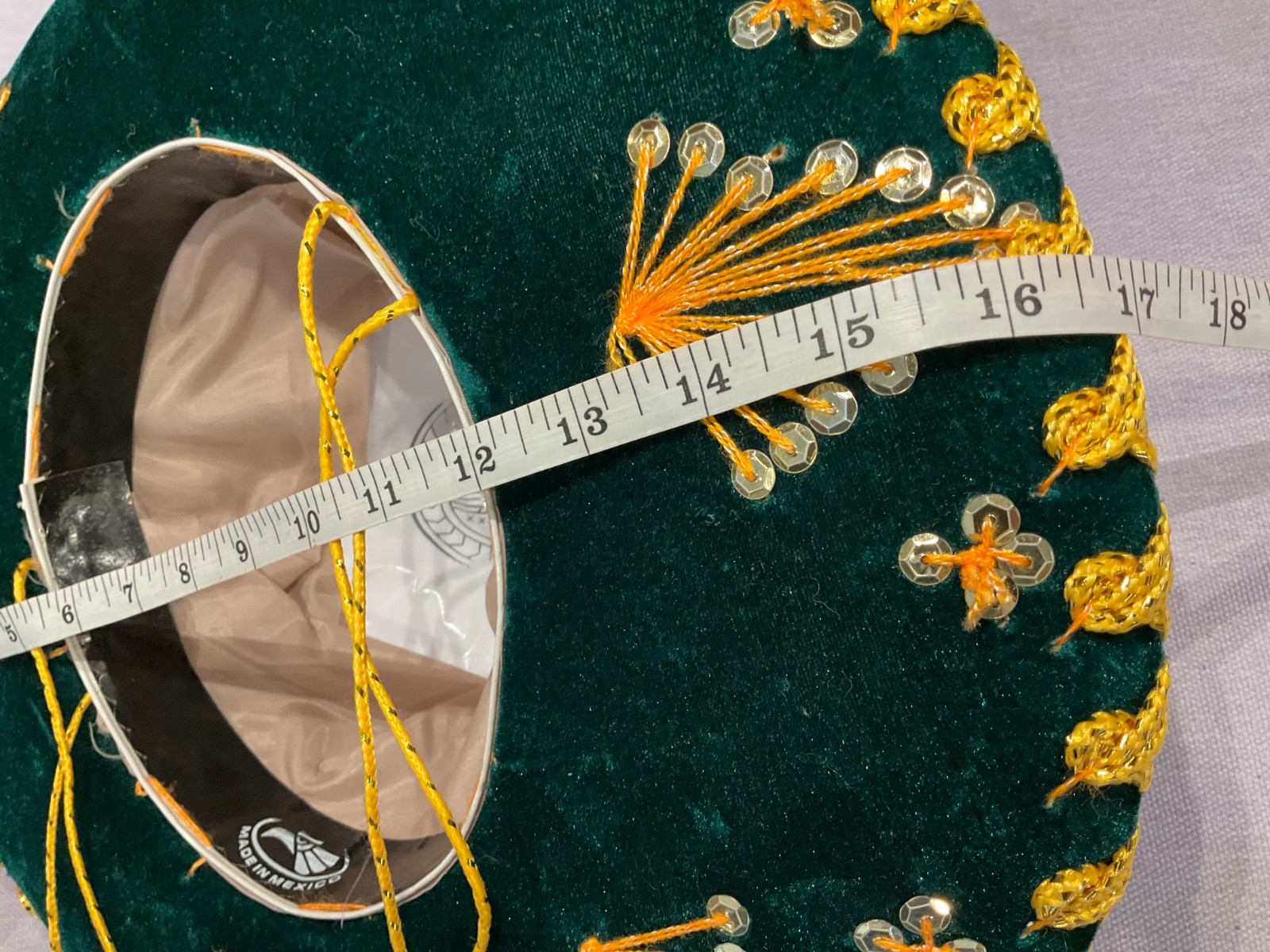 Vintage 17 Pigalle Mexican Sombrero Mariachi Hat GREEN - GOLD Hecho En Mexico