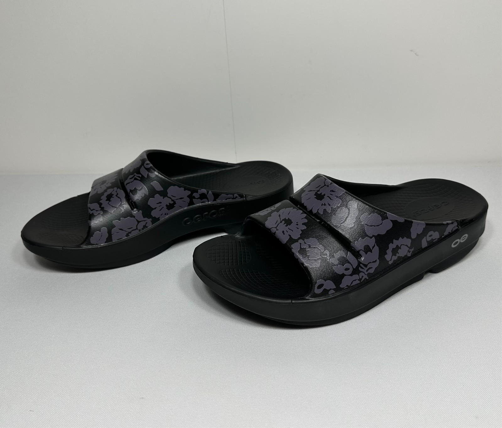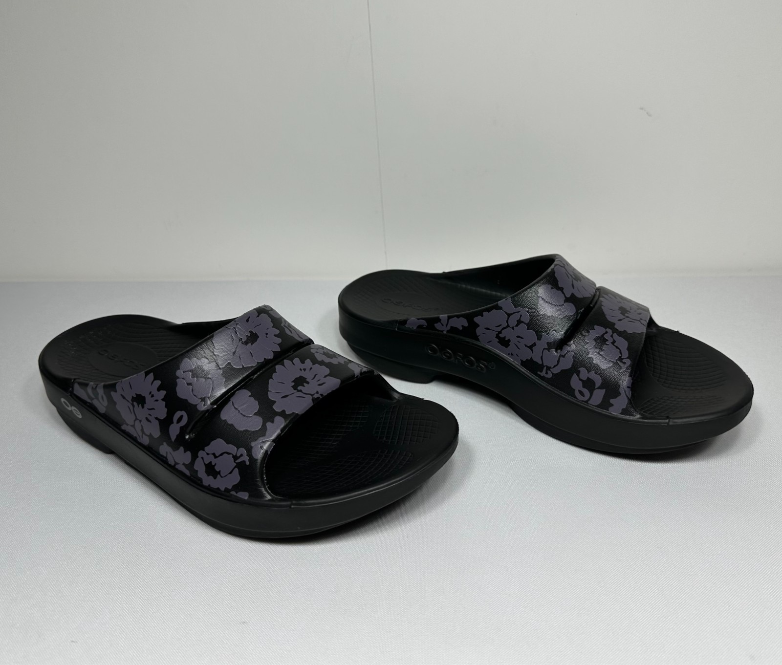 NWOB Oofos OOahh Limited Edition Midnight Tropics Sport Slide Sandals Women's 6