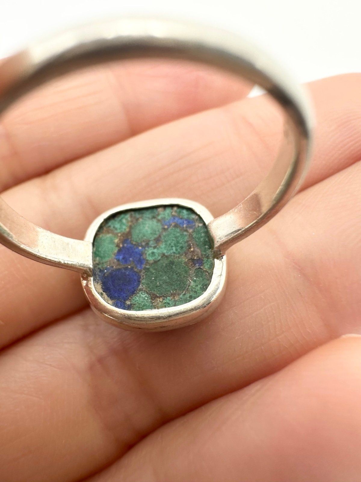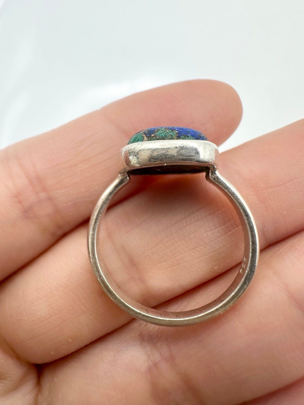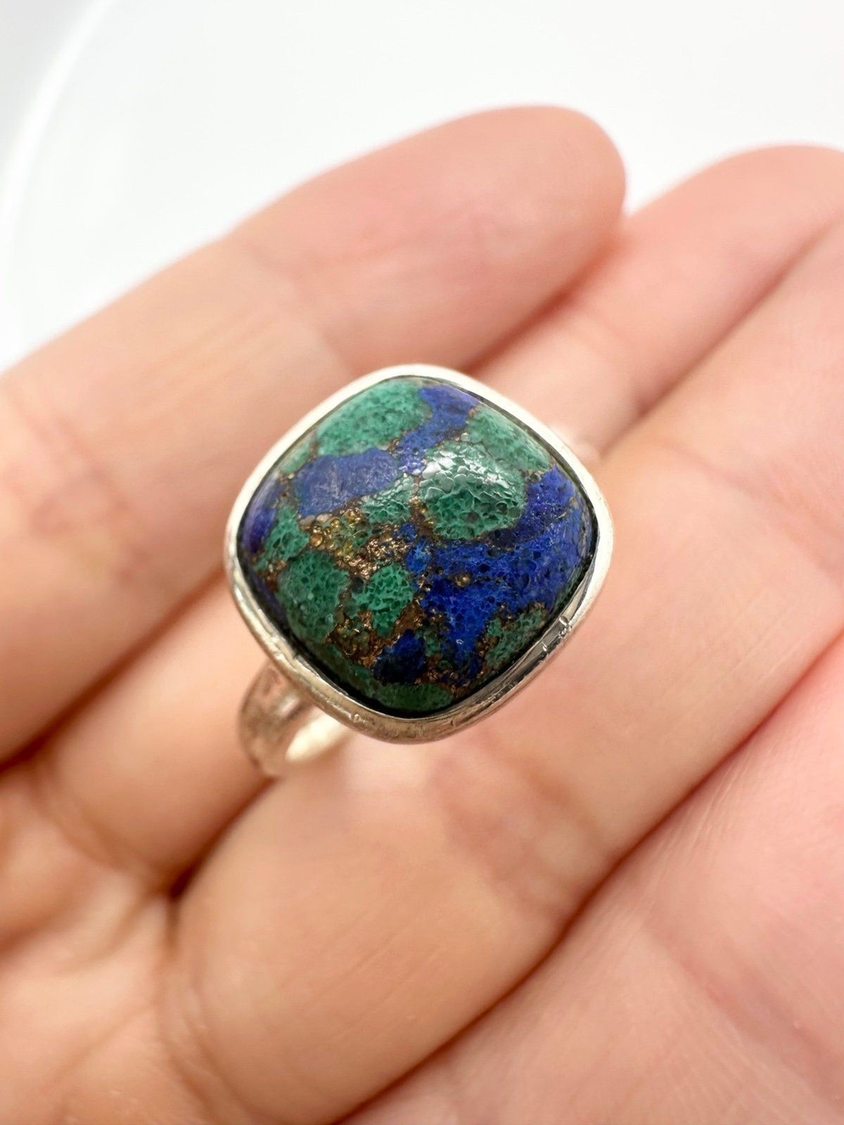 925 sterling silver azurite malachite ring size 7.25