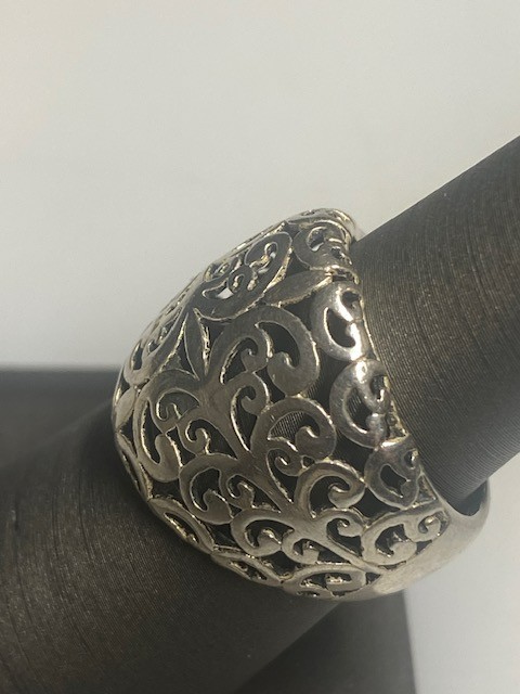 925 STERLING SILVER WIDE PIECED LACY DOME BAND RING SIZE 6