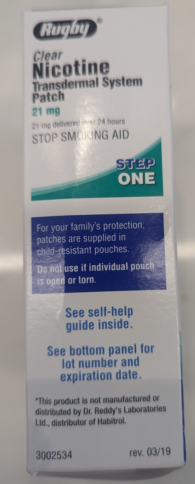 Rugby Clear Nicotine Transdermal System Patch Step 1 21mg 14 Patches 11/2026