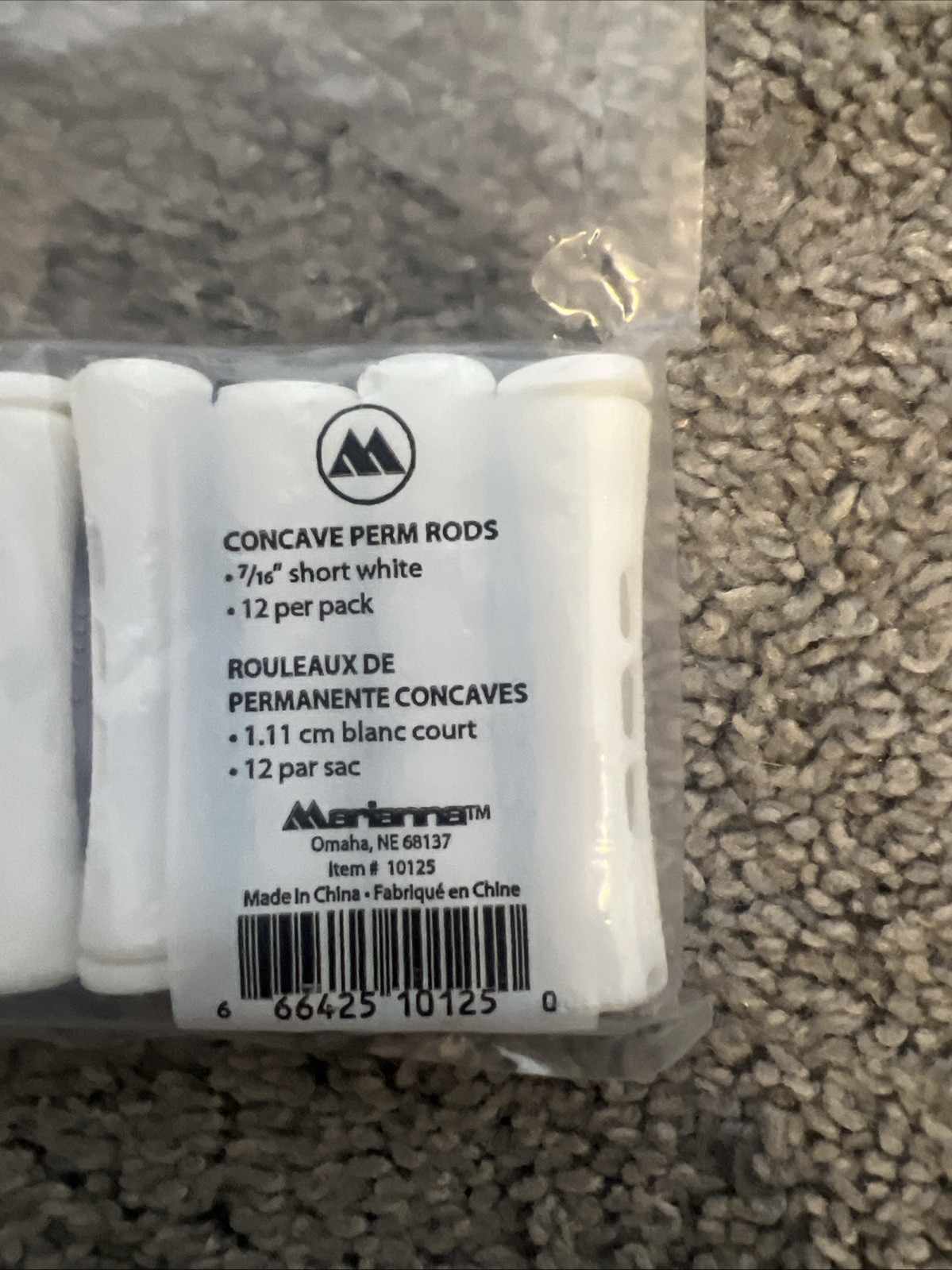 Brand New MARIANNA CONCAVE Perm Rods Short White 7/16 12 Per Pack