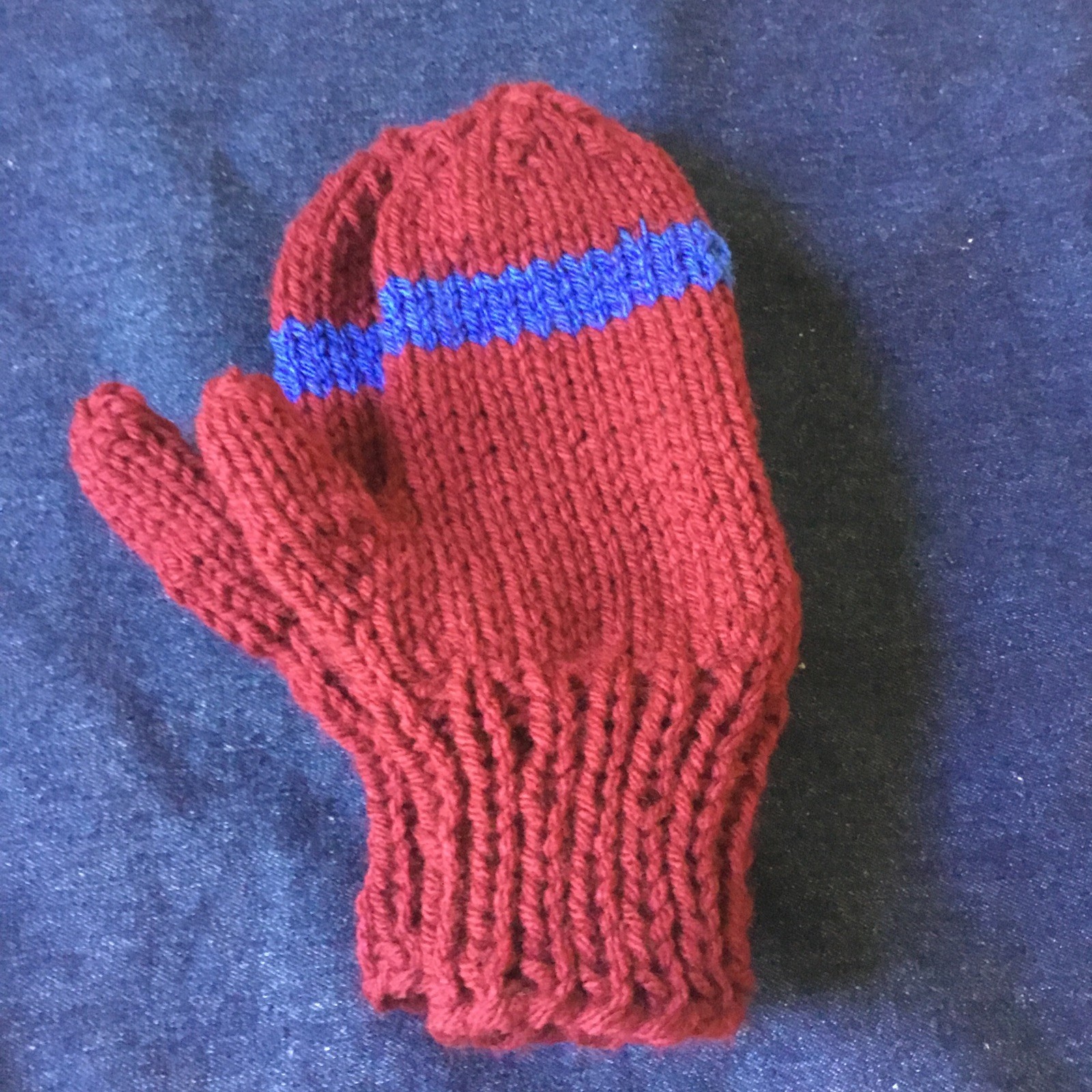Kids Mittens, Size M, Ages 6-8, Handknit Ted, NEW, Cranberry Blue