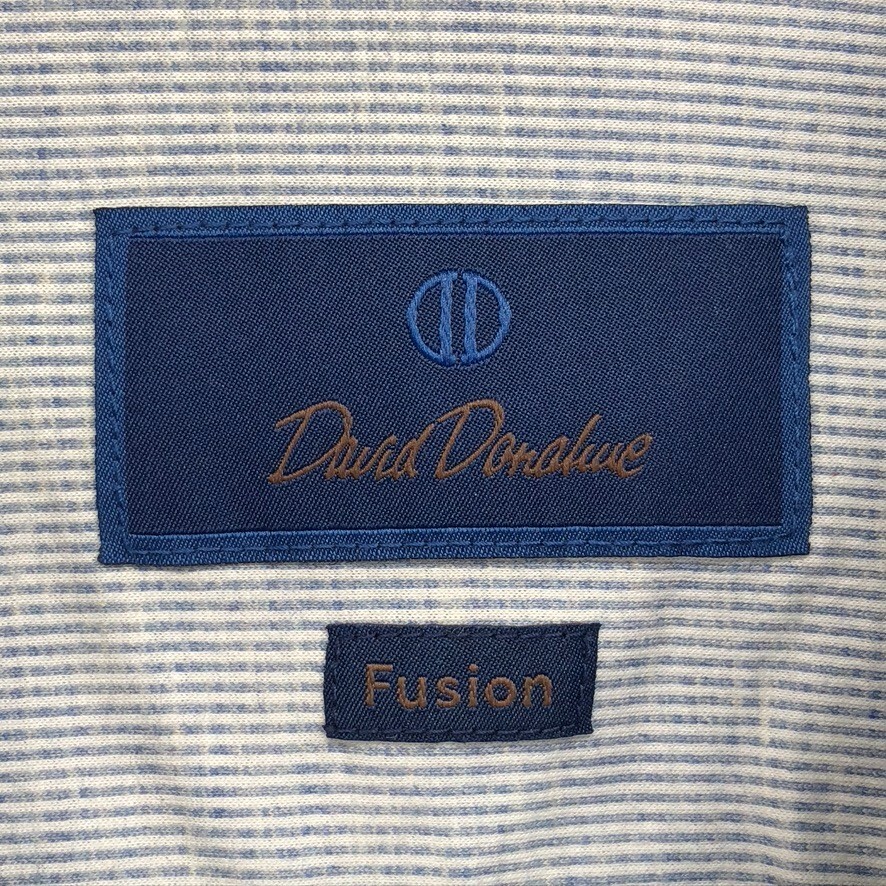 как выглядит David Donahue Fusion Button Up Dress Shirt Mens Large XL Blue Stripe Business фото