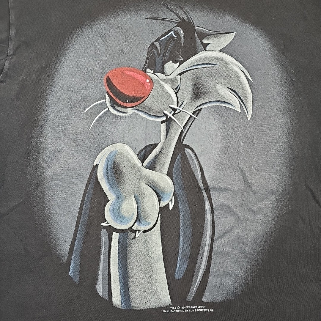 как выглядит VTG Looney Tunes Sylvester Graphic T-Shirt Size L Black 1994 Single Stitch фото