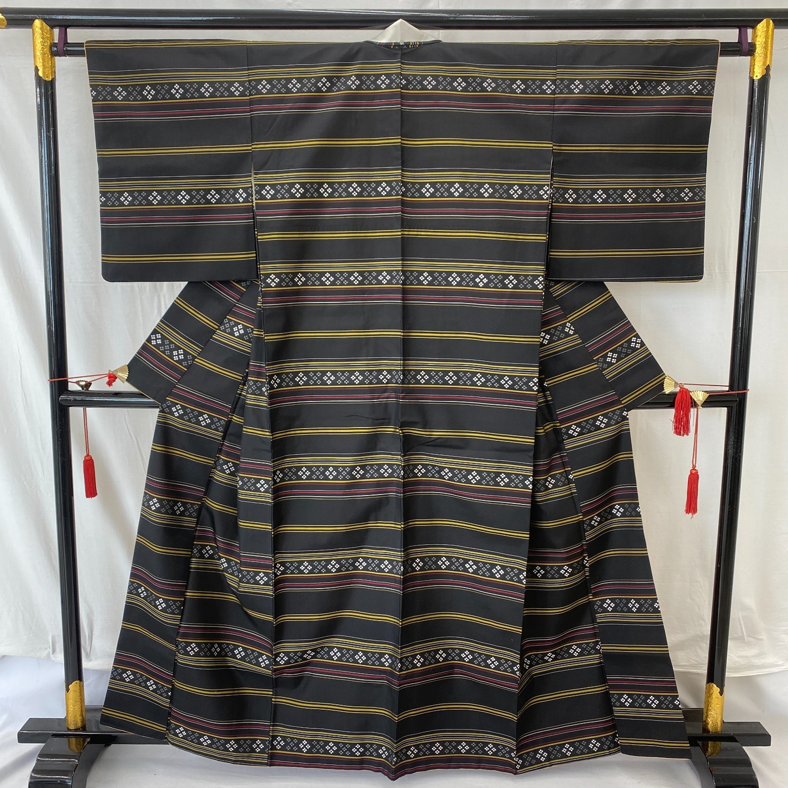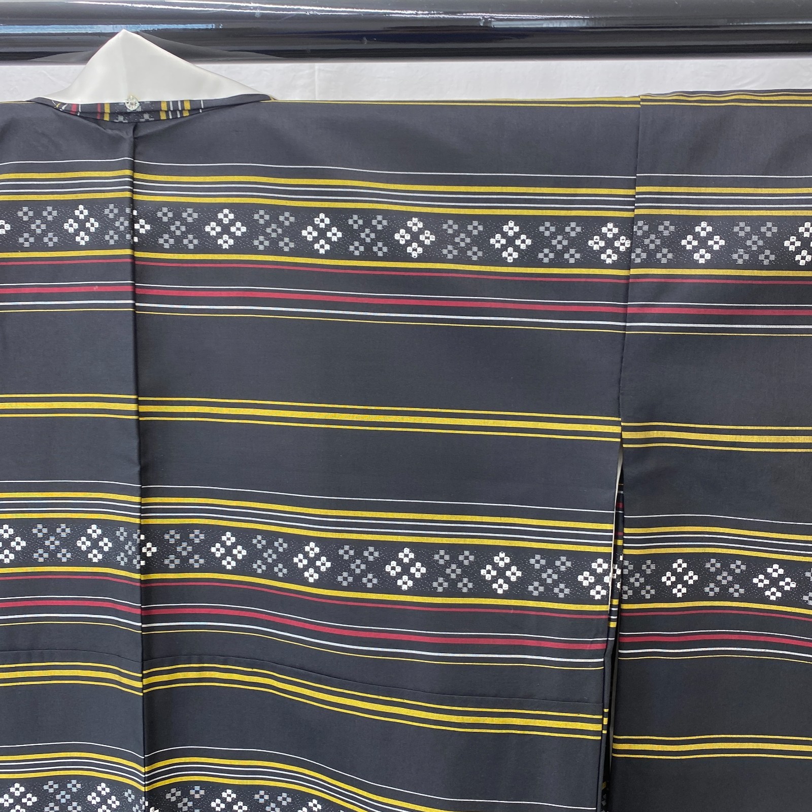 Japanese Vintage Kimono Polyester Black Komon Traditional Authentic Length 62in