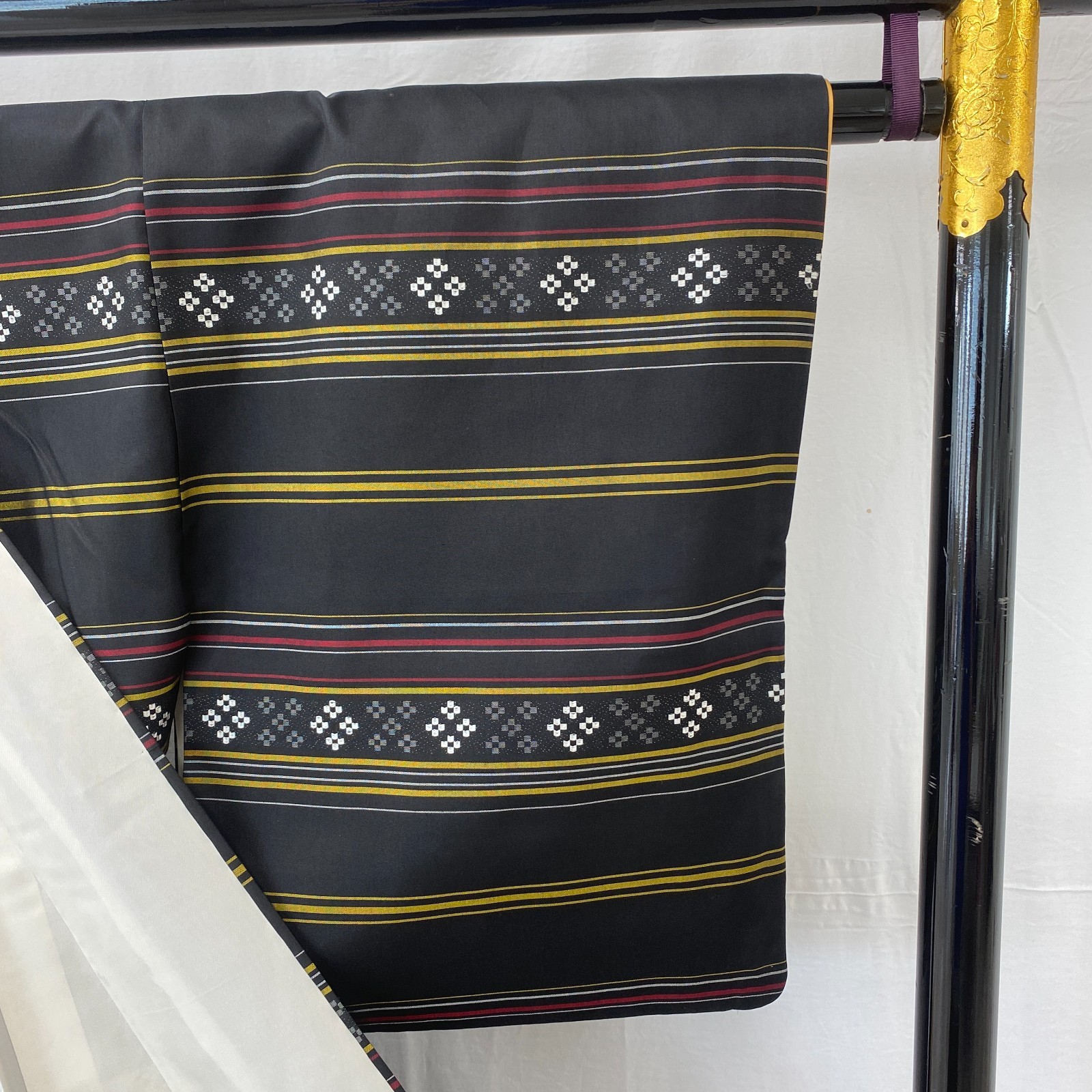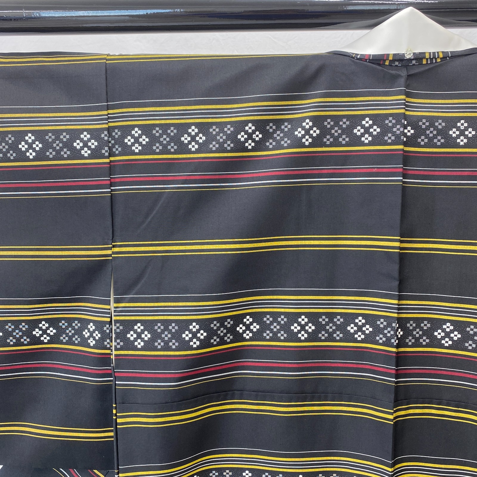 как выглядит Japanese Vintage Kimono Polyester Black Komon Traditional Authentic Length 62in фото
