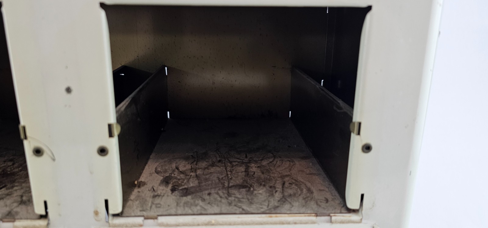Wolverine Supply Mfg. Co. Tin Toy Stove Oven 1950s White Red Metal Kitchen Toy