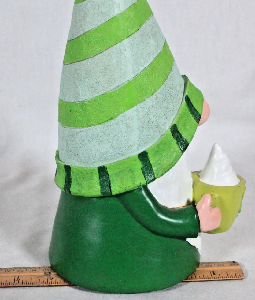 как выглядит ST. PATRICKS DAY GREEN WHITE IRISH GNOME FIGURE HOLDING A MUG 12" TALL NEW фото