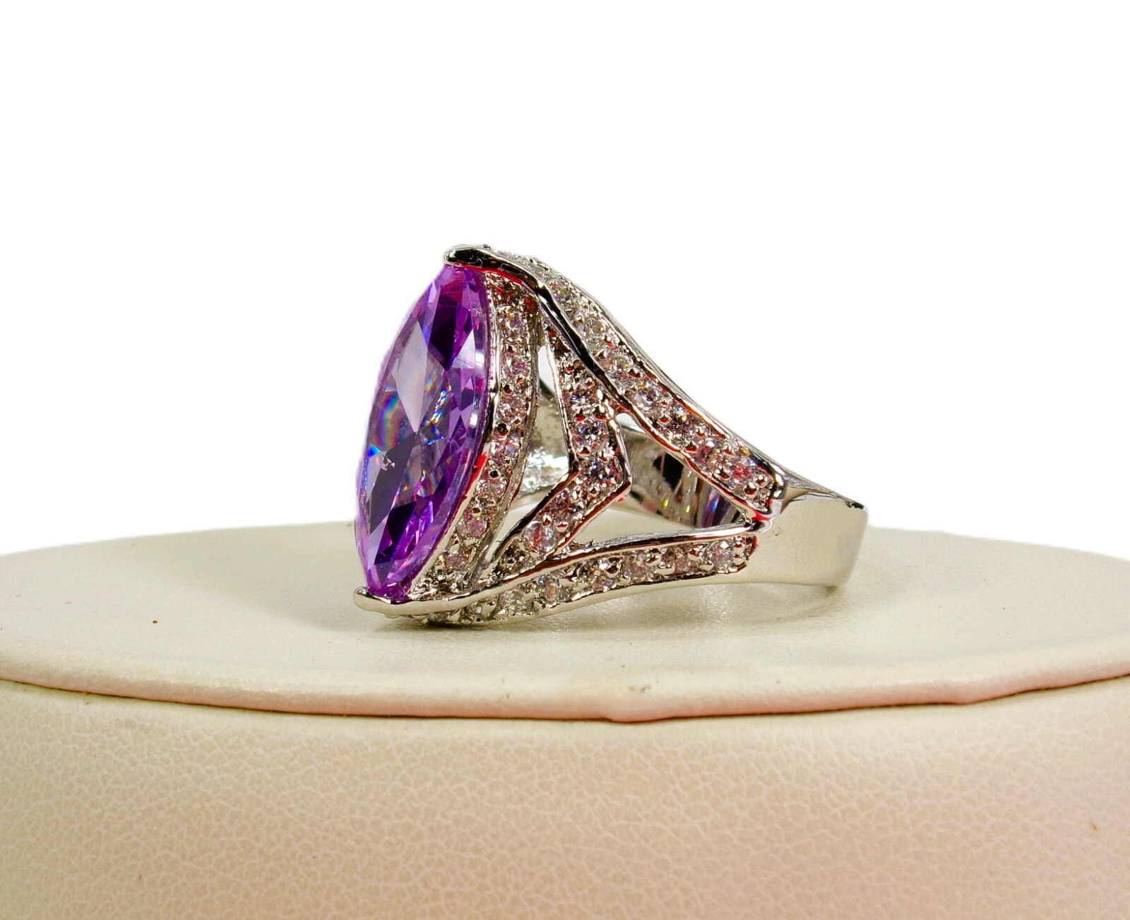 Light purple marquise cubic zirconia stone ring with clear cz stones Size 8 NEW