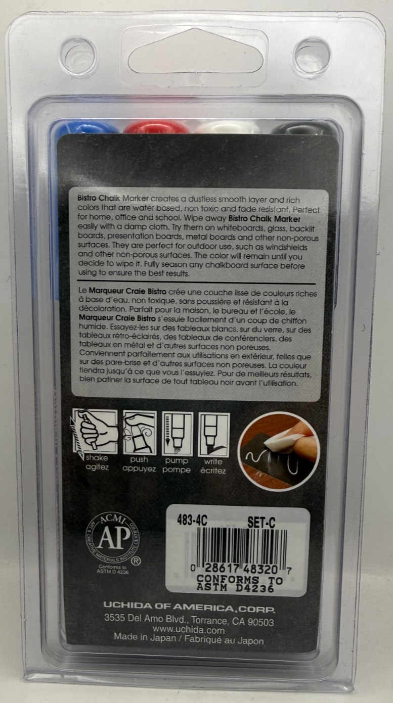 Bistro Marvy Uchida Chisel Tip Chalk Markers 4 pc 483-4C