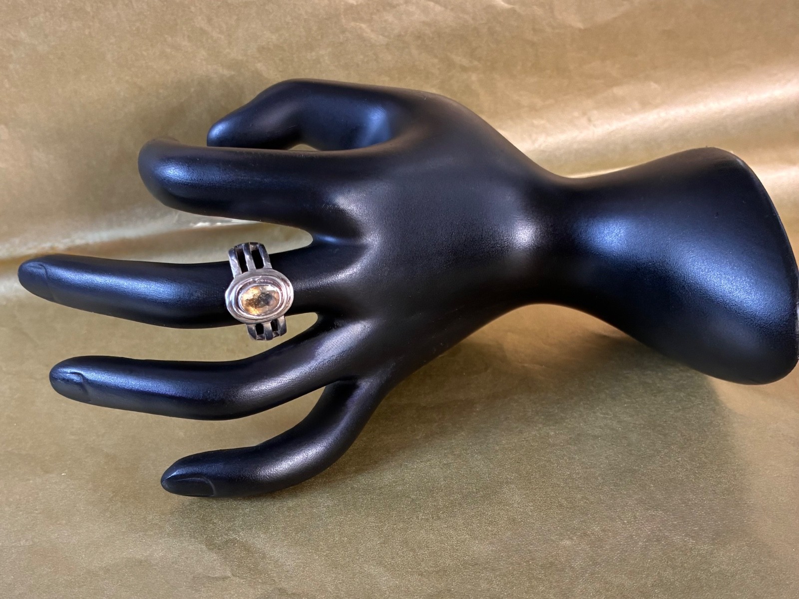 как выглядит Vintage 925 Sterling Silver Ring w/ Faceted Oval Cut Citrine Open Design Size 6 фото
