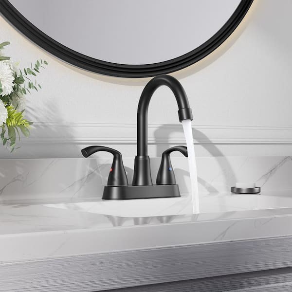 Black Bathroom Sink Faucet 3 Holes 4 Inch Centerset Vanity Mixer Faucet 2 Handle