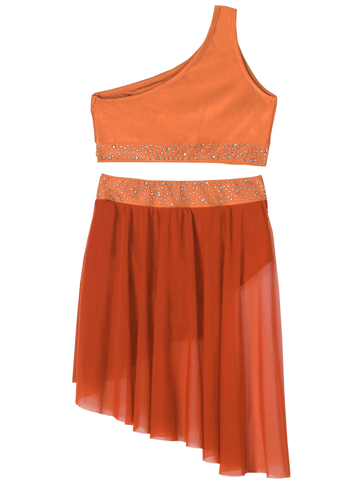 Kids Girls Lyrical Dance Outfit Shiny Crop Top With Skirted Briefs Rhinestone