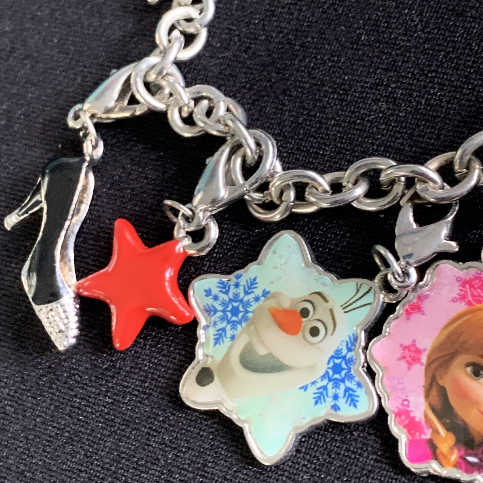 • Disney Frozen Movie 9 Charm Bracelet Anna Elsa Olaf Sven 7 Silver Tone Enamel