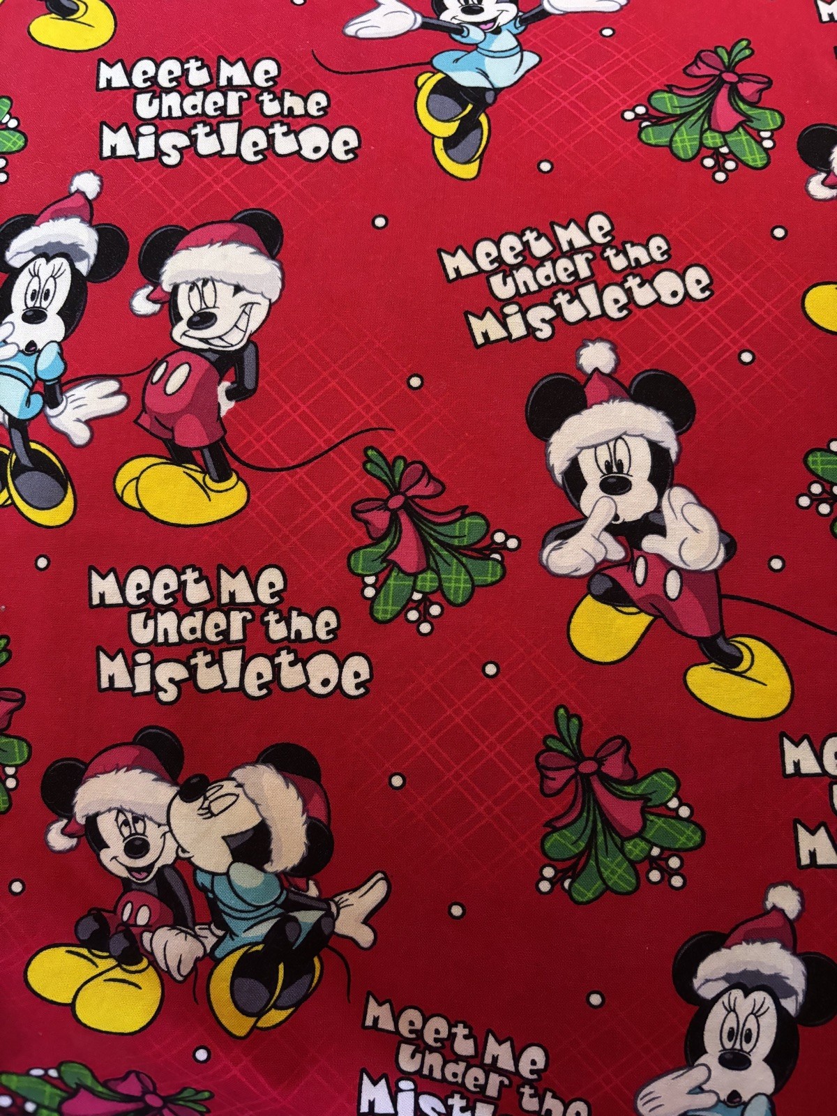 EUC Winter Holiday Christmas Disney Mickey Minnie Mistletoe Scrub Top Size XL