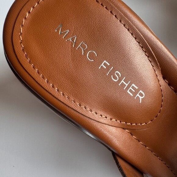 Women Marc Fisher Matina sz 9 NWOT Tan Strappy Open Toe Block Heel Sandals 89