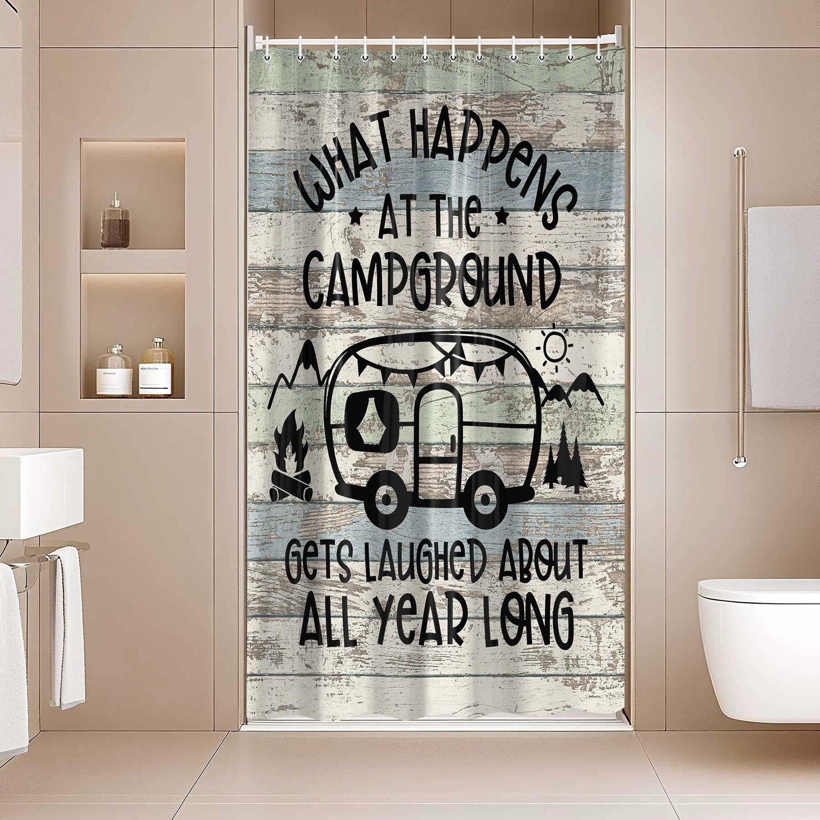 RV Camping Shower Curtain 47x64 inch Rustic Wood Waterproof Fabric with Hooks