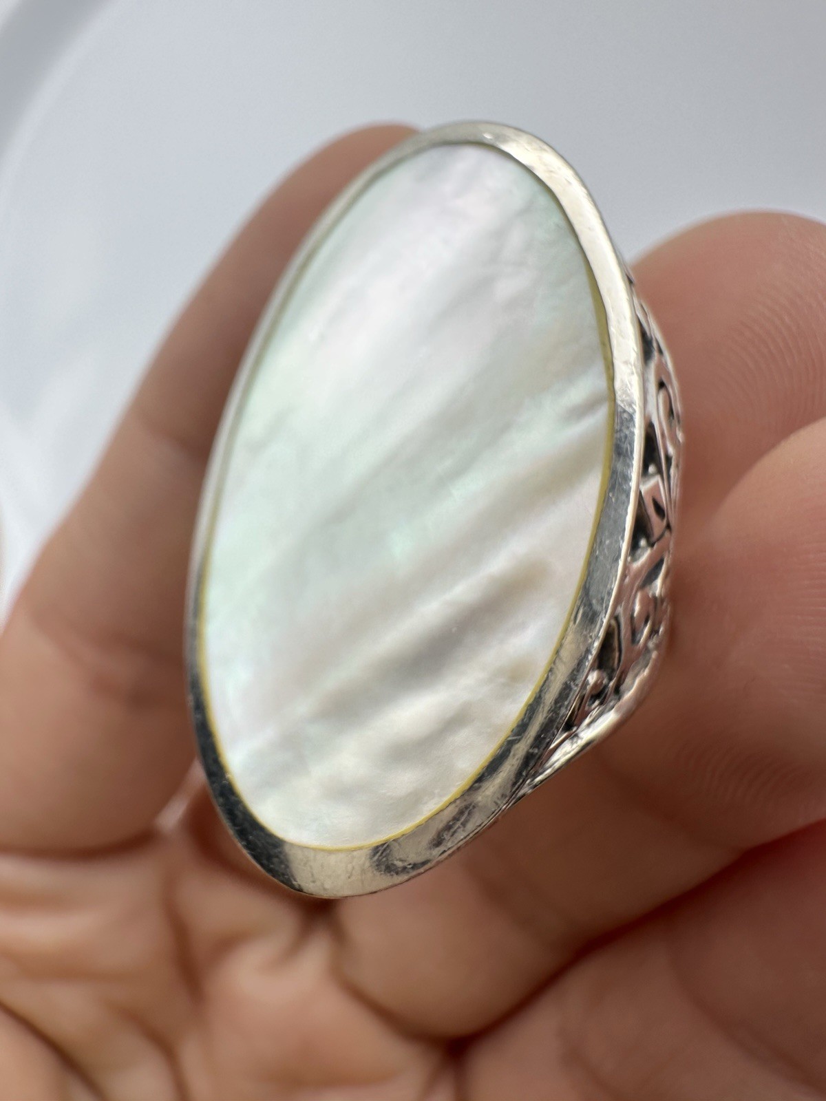 Oval Mother Of Pearl Statement Ring With Sterling Silver Size 7