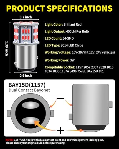 BAY15D 7528 2057 2357 LED Bulbs Red, Super Bright 3014 54 1157 Brilliant Red