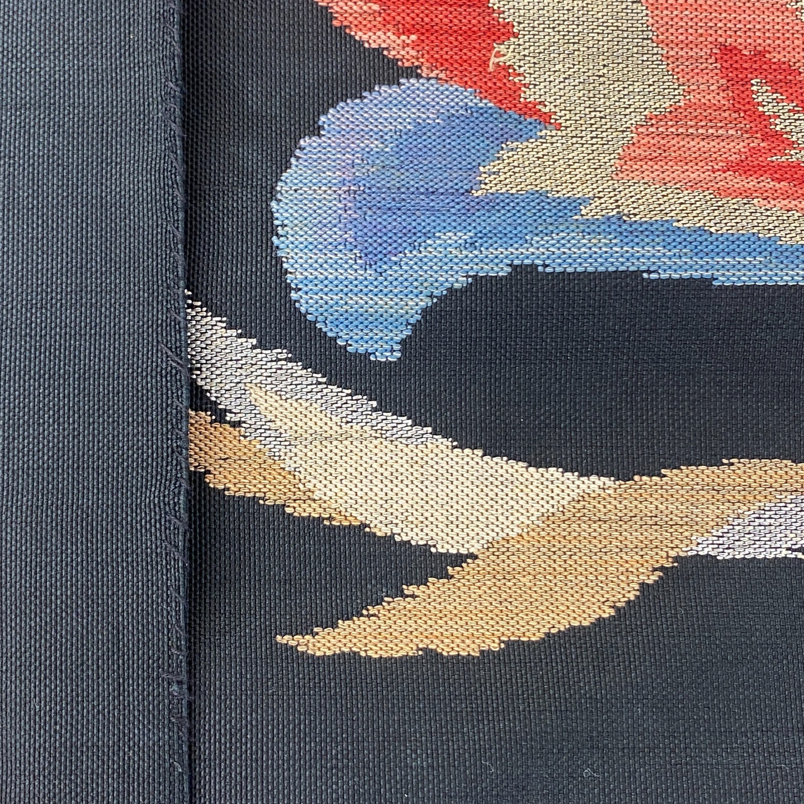 как выглядит Japanese Vintage Kimono Nagoya Obi Cotton Black Traditional Embroidery 93x 11in фото