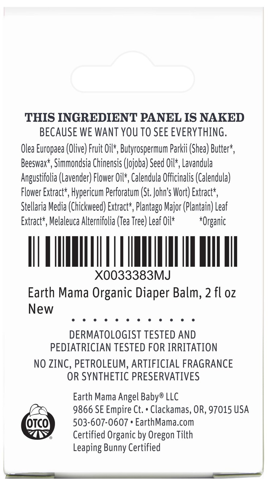 Earth Mama Organic Diaper Balm 2 oz EWG Verified Fragrance-Free