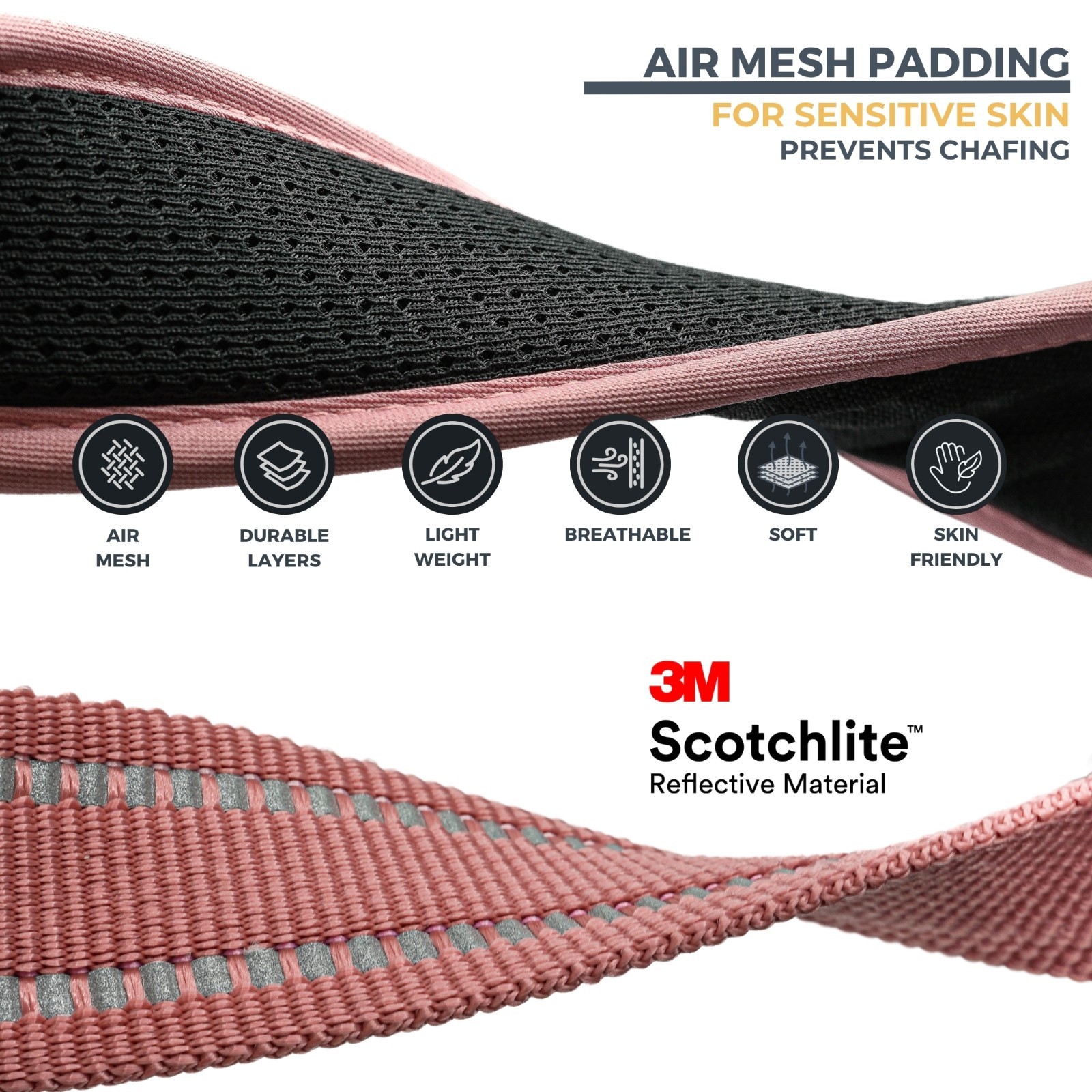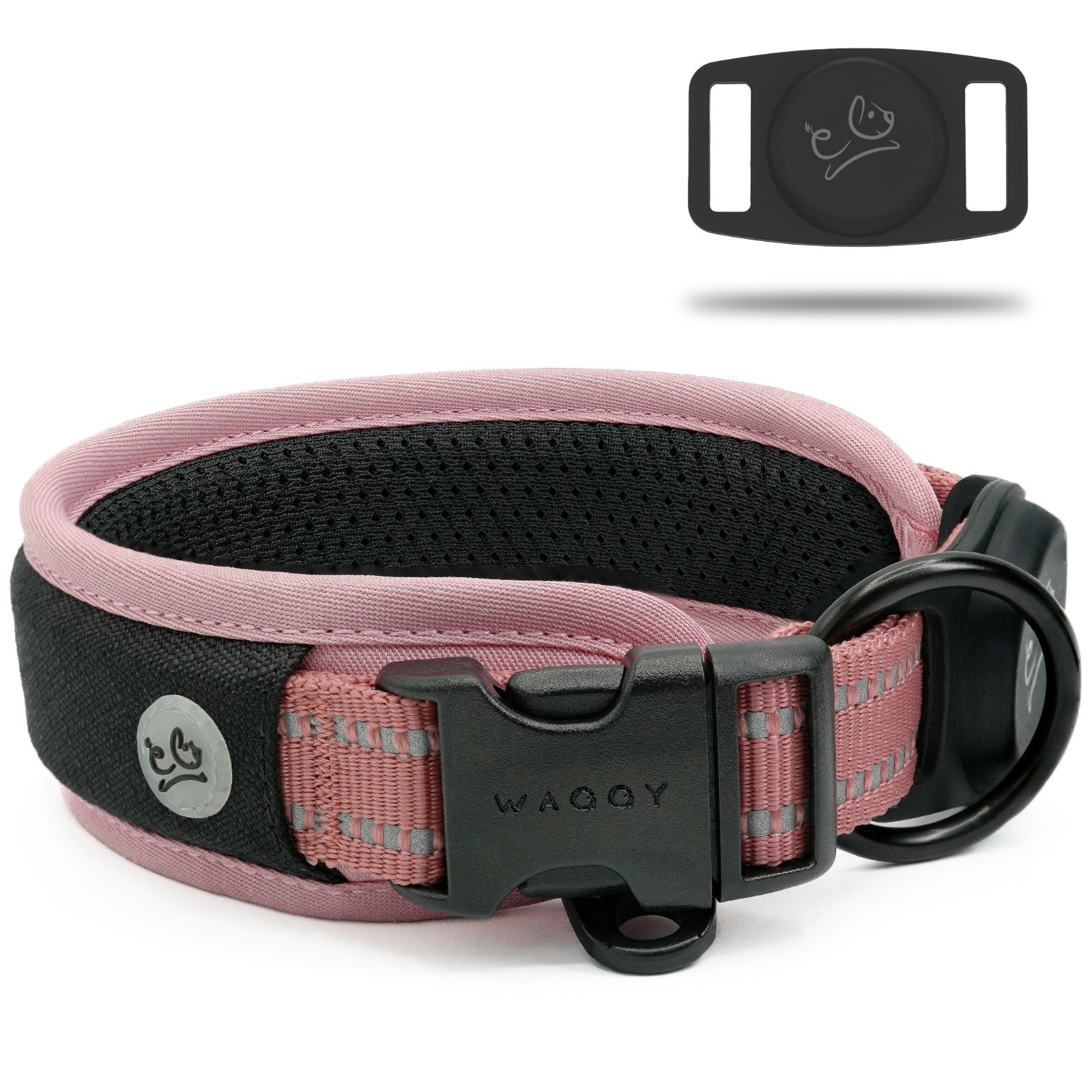 Airtag Dog Collar, Air Mesh Ultra Soft Padding - 3M Reflective Stitching - PINK