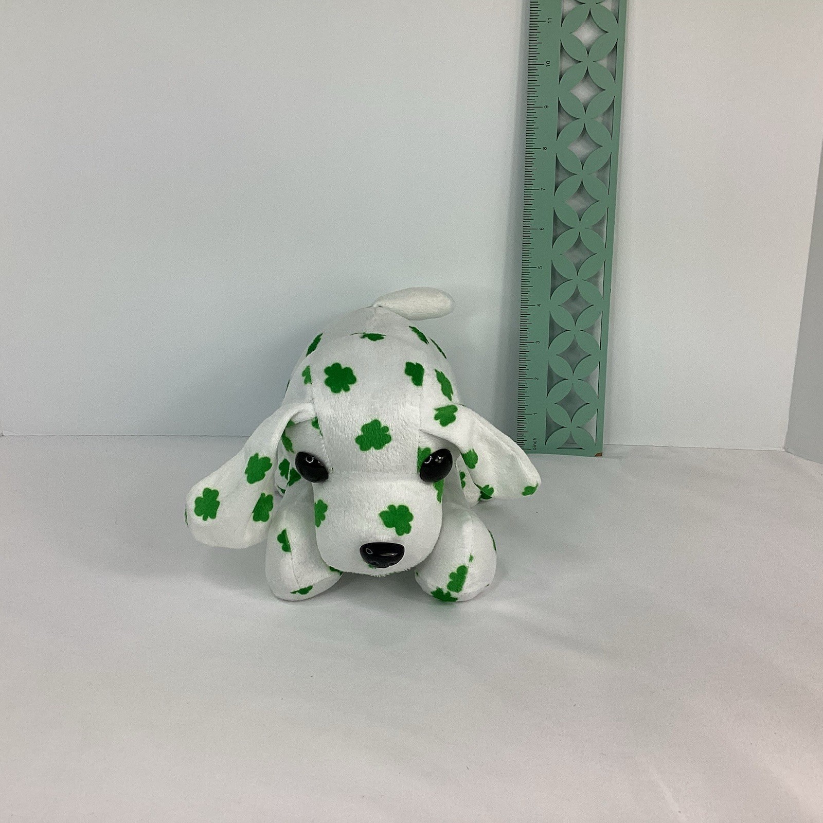 White Puppy Dog Plush Shamrock Green Clover St Patricks Day Stuffed Animal Toy