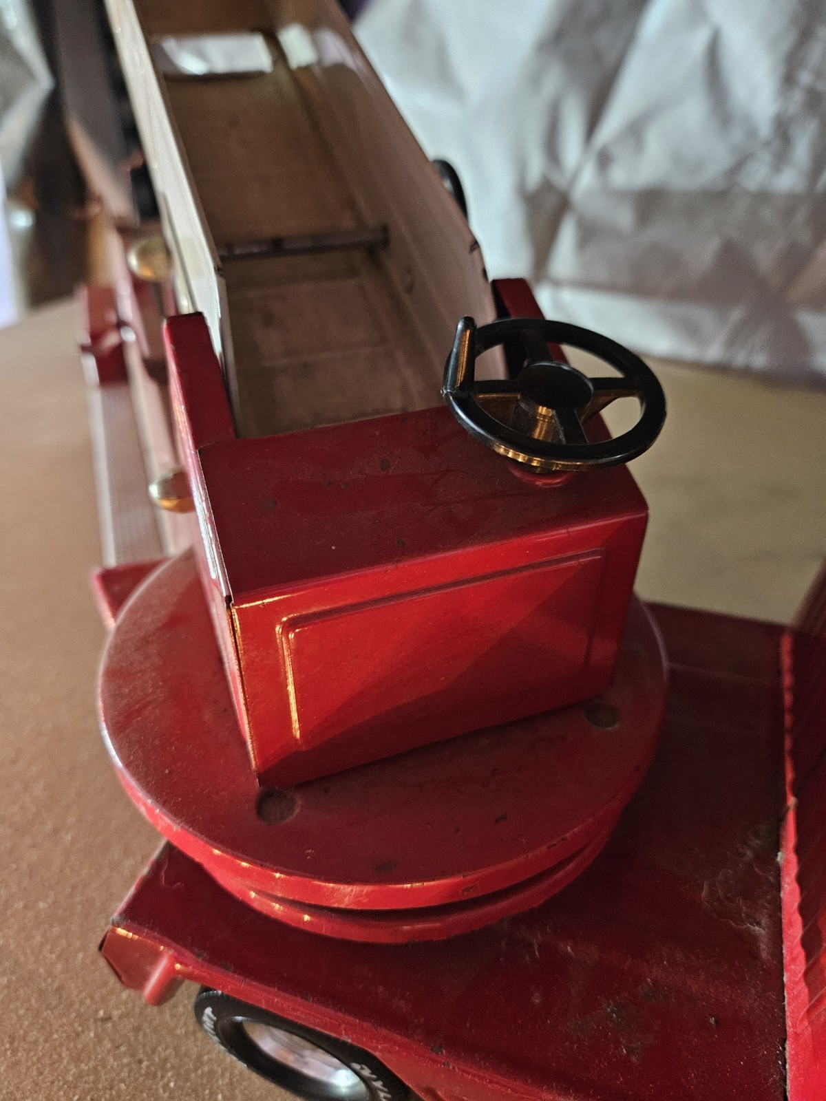 как выглядит VINTAGE NYLINT AERIAL HOOK N LADDER FIRE ENGINE DEPARTMENT TRUCK CO. 6 STEEL TOY фото