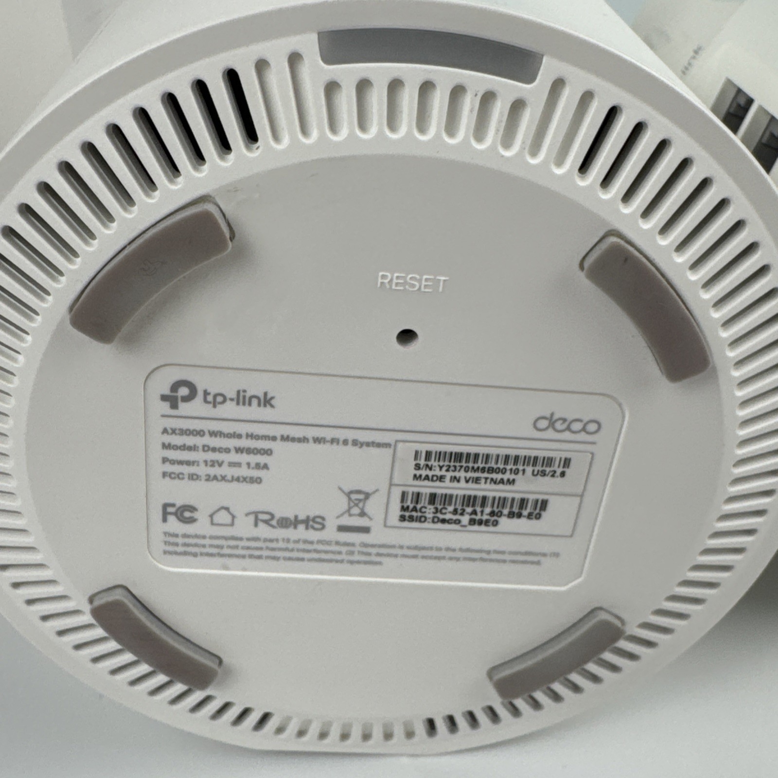 как выглядит TP-LINK Deco W6000 AX3000 Full Home Mesh Wi-Fi 6 System 2 Pk White FACTORY RESET фото
