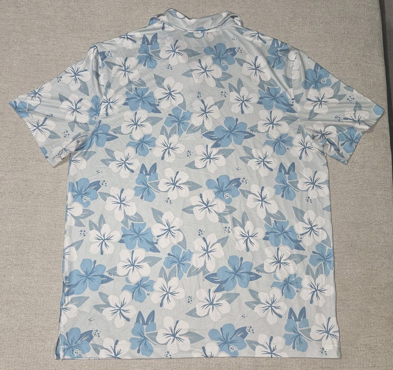 Hurley Blue White Floral Hibiscus Printed Short Sleeve Golf Polo Shirt Men s L