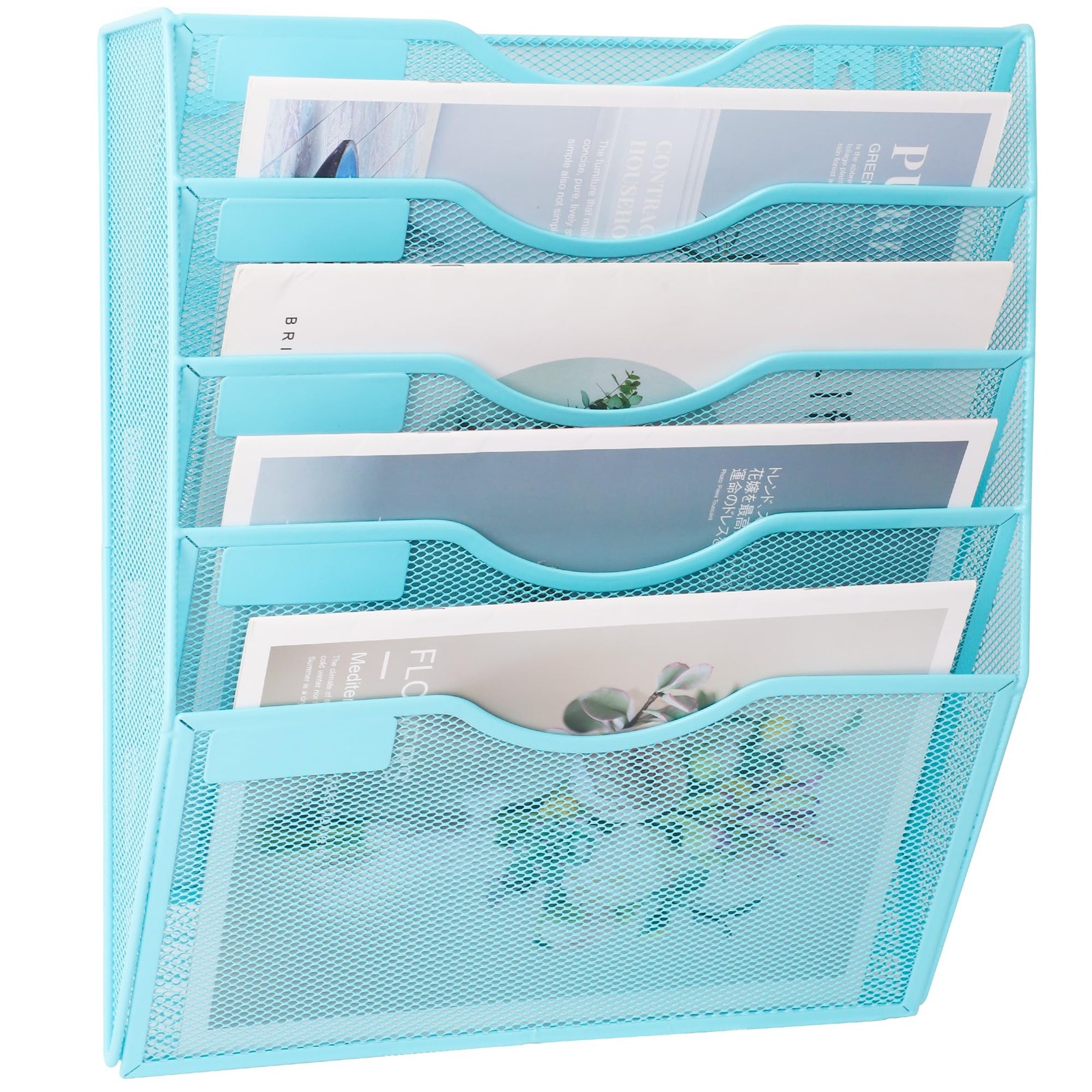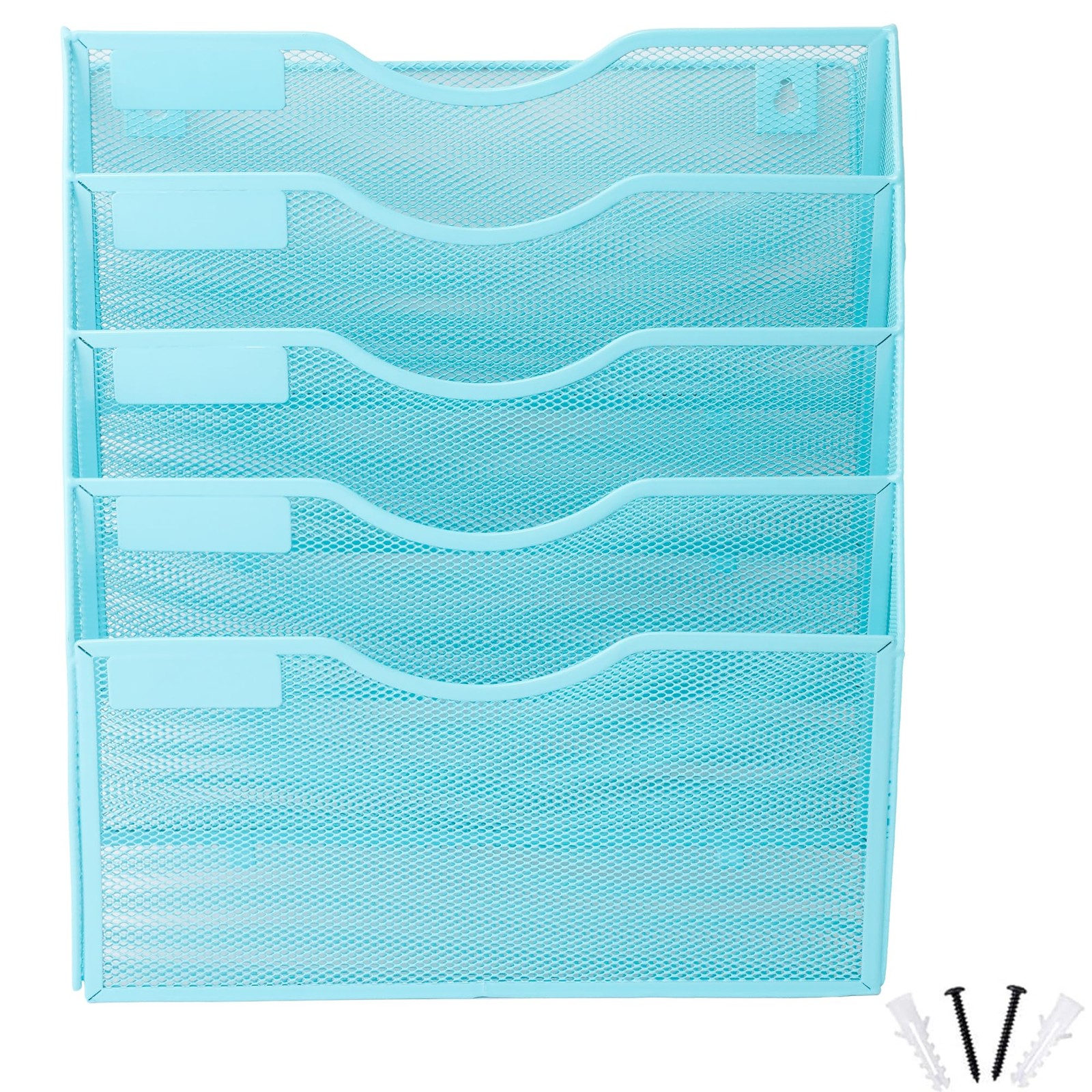 5 Pocket Mesh Hanging Wall File Organizer Wall Mounted Paper Document Folder ...