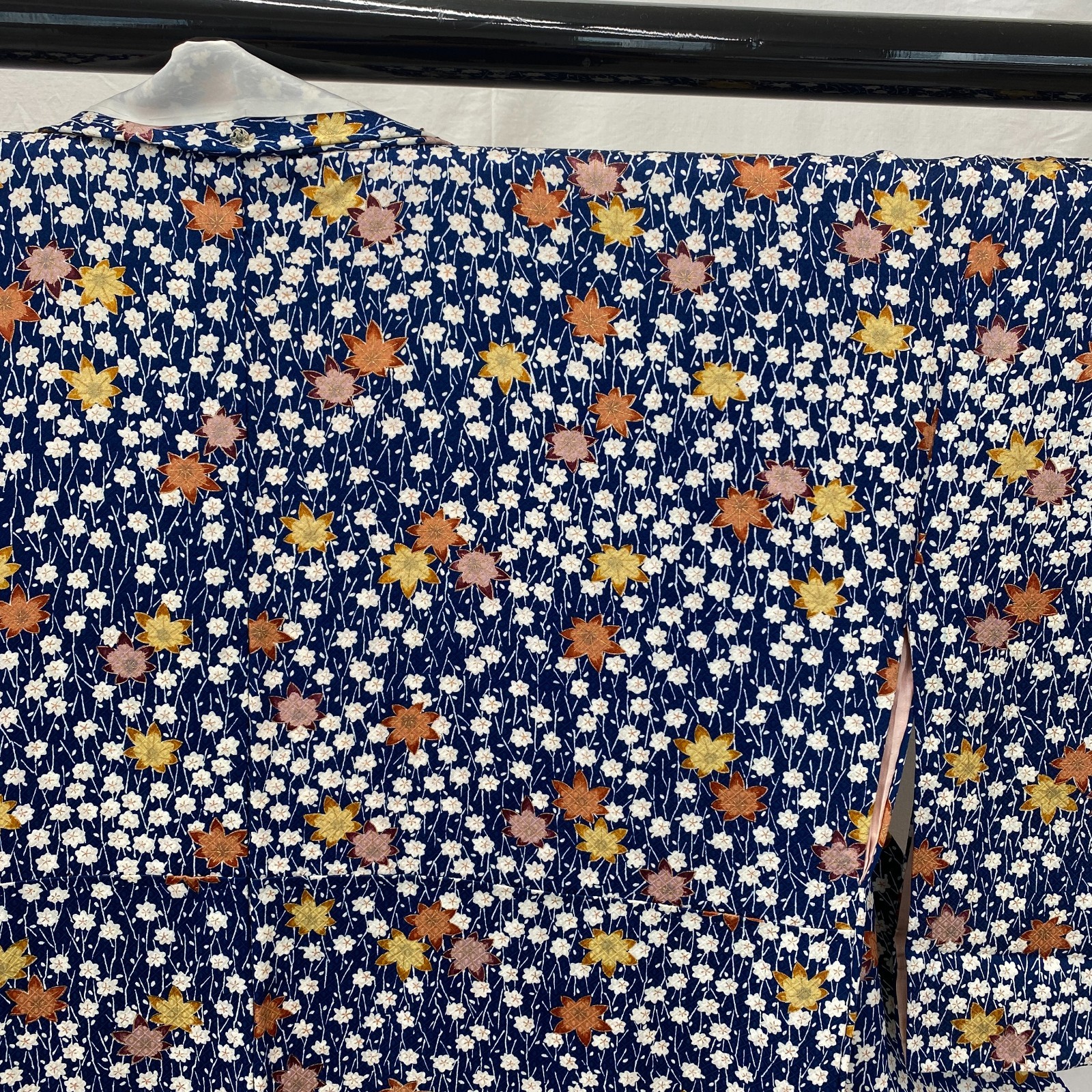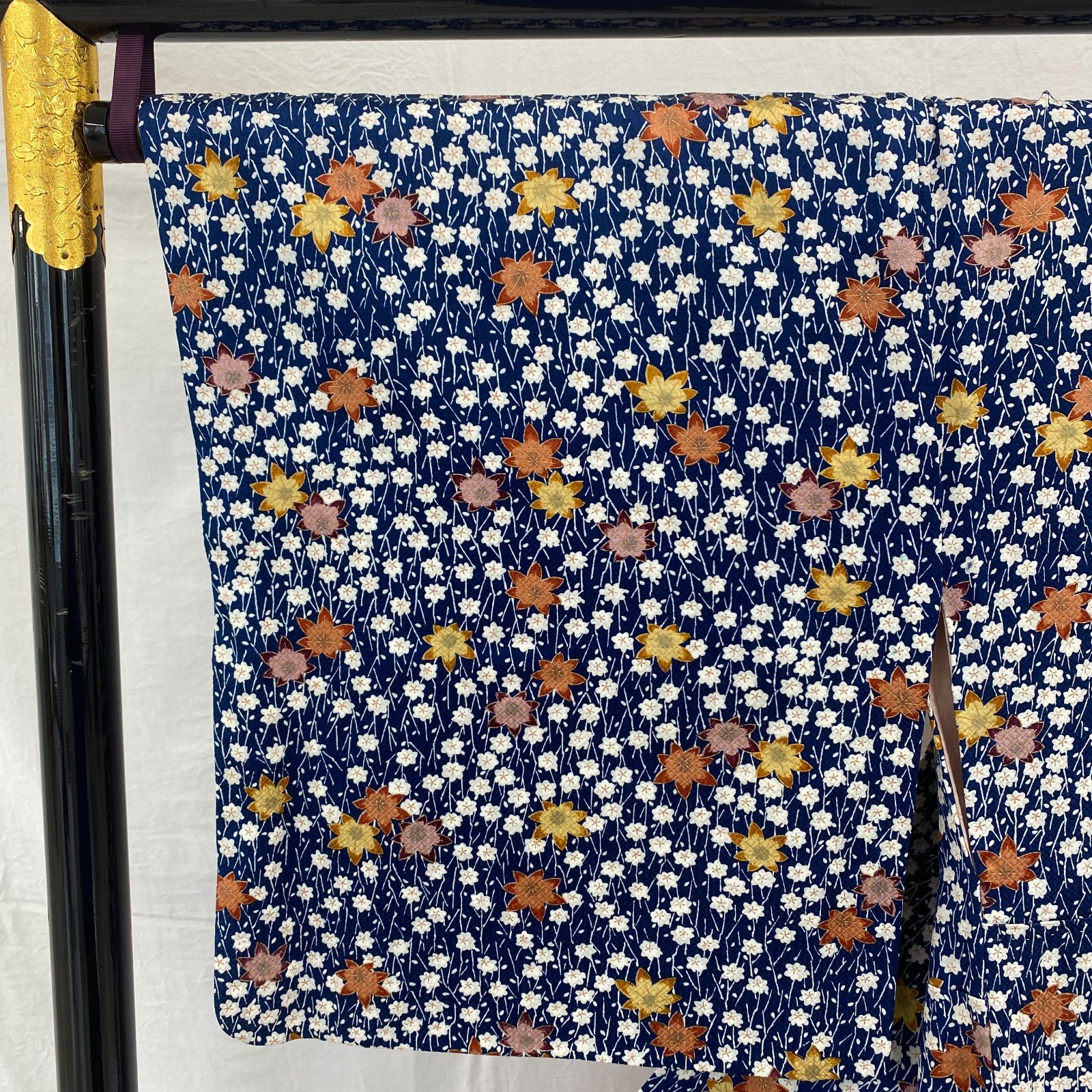 Japanese Vintage Kimono Silk Navy Komon Traditional Authentic Length 62 in