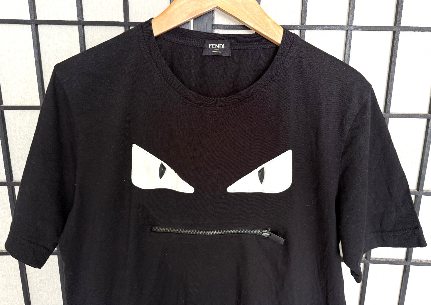 Monster Eyes T-Shirt by Fendi Men Size L Black T-Shirt Regular Fit Short Sleeve