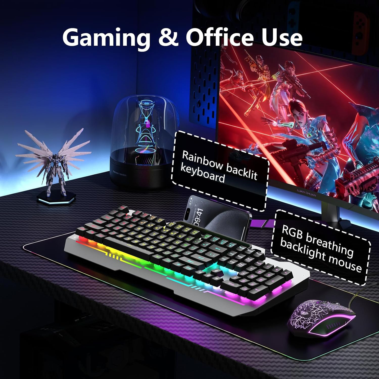 как выглядит Keyboard, T102 104 Keys Gaming Keyboard and Mouse Combo with RGB Backlit Number фото