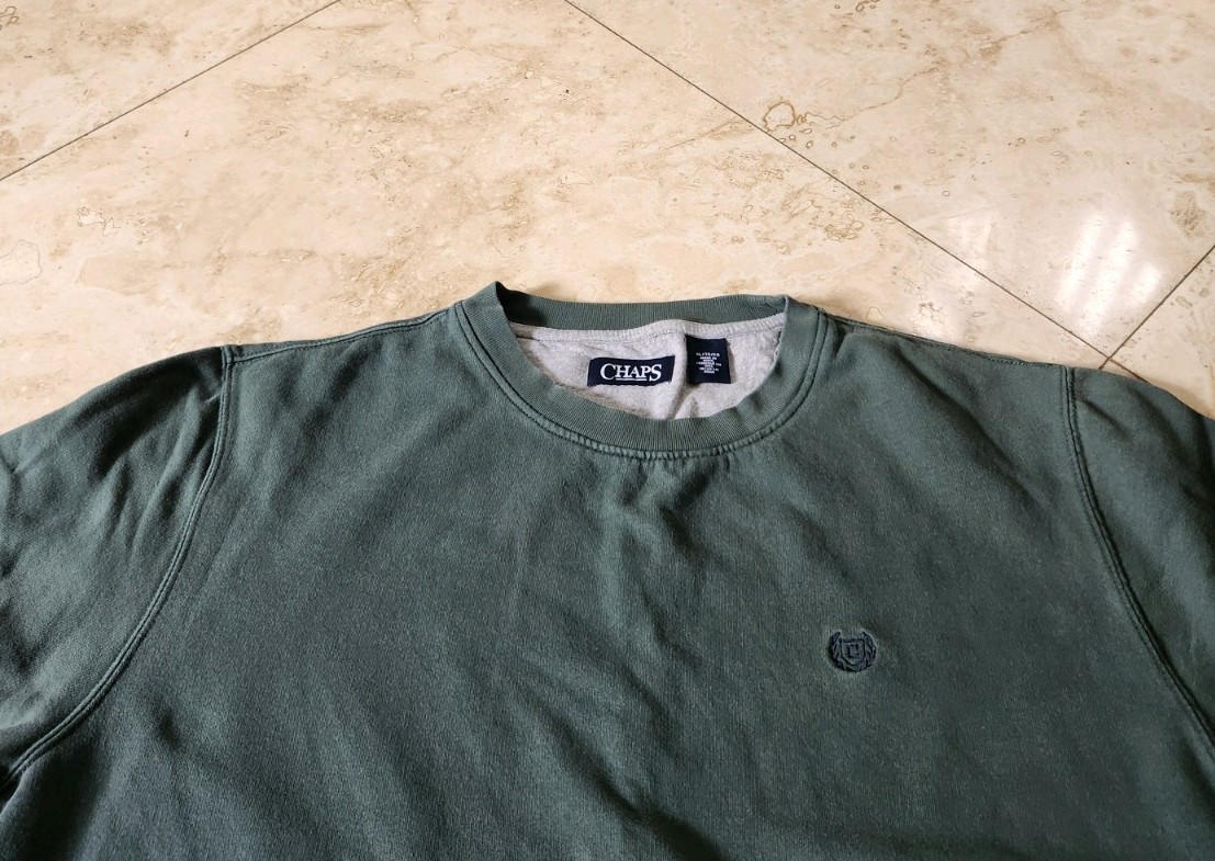 как выглядит Mens Sweatshirt Crewneck Chaps Logo Green Cotton/Polyester Vintage Men XL фото