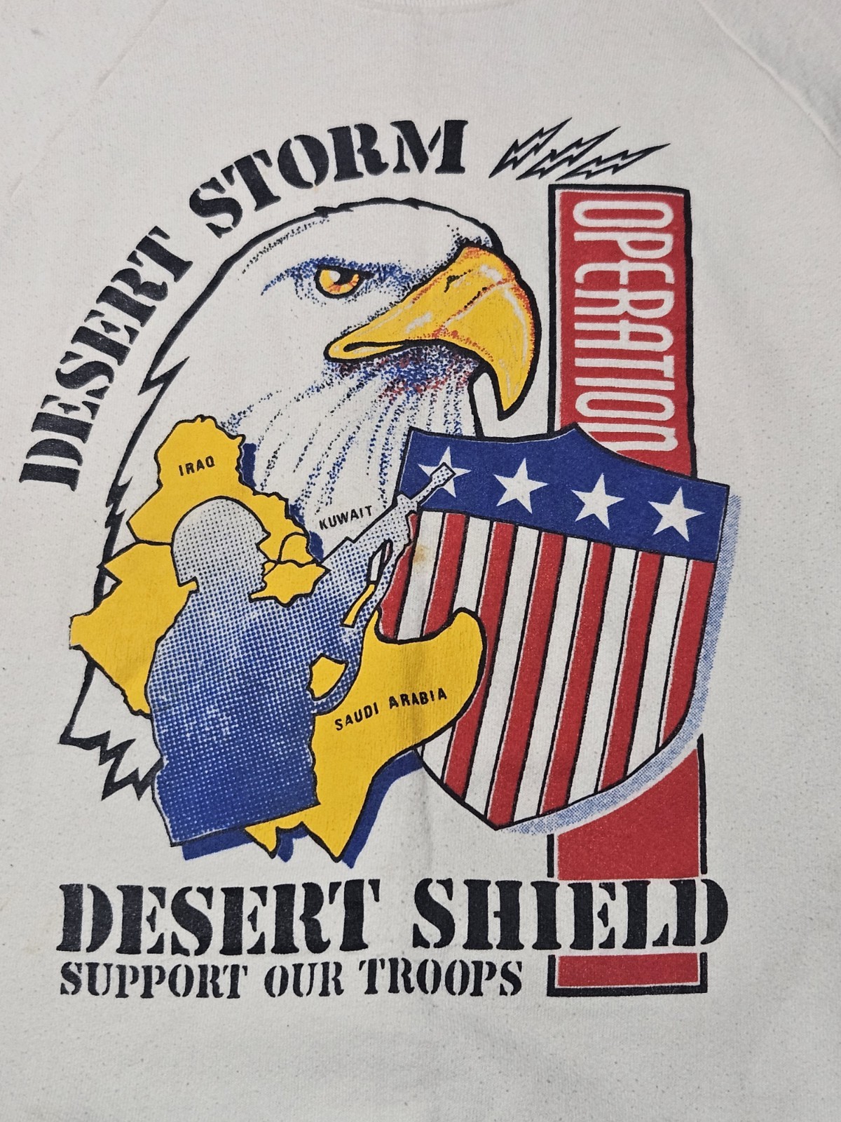 Vintage 90s Operation Desert Storm Shield Sweatshirt USA Eagle Fruit Loom Crew