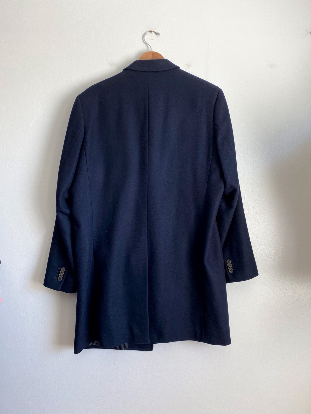 как выглядит Banana Republic Nova Fides Men s Navy Cashmere Wool Overcoat Long Coat Quilted L фото