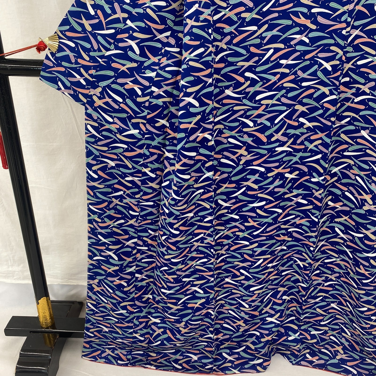 как выглядит Japanese Vintage Kimono Silk Blue Komon Traditional Authentic Length 64 in фото