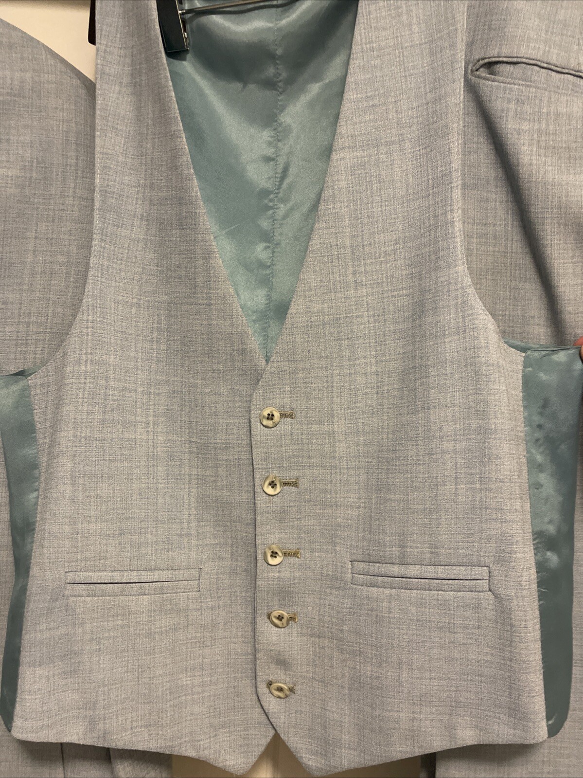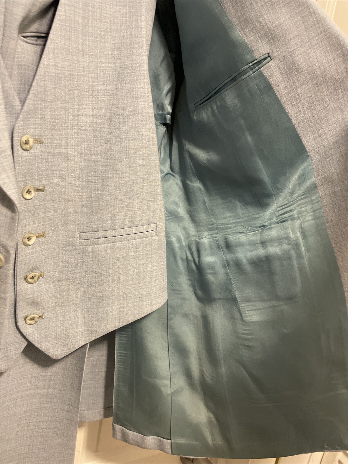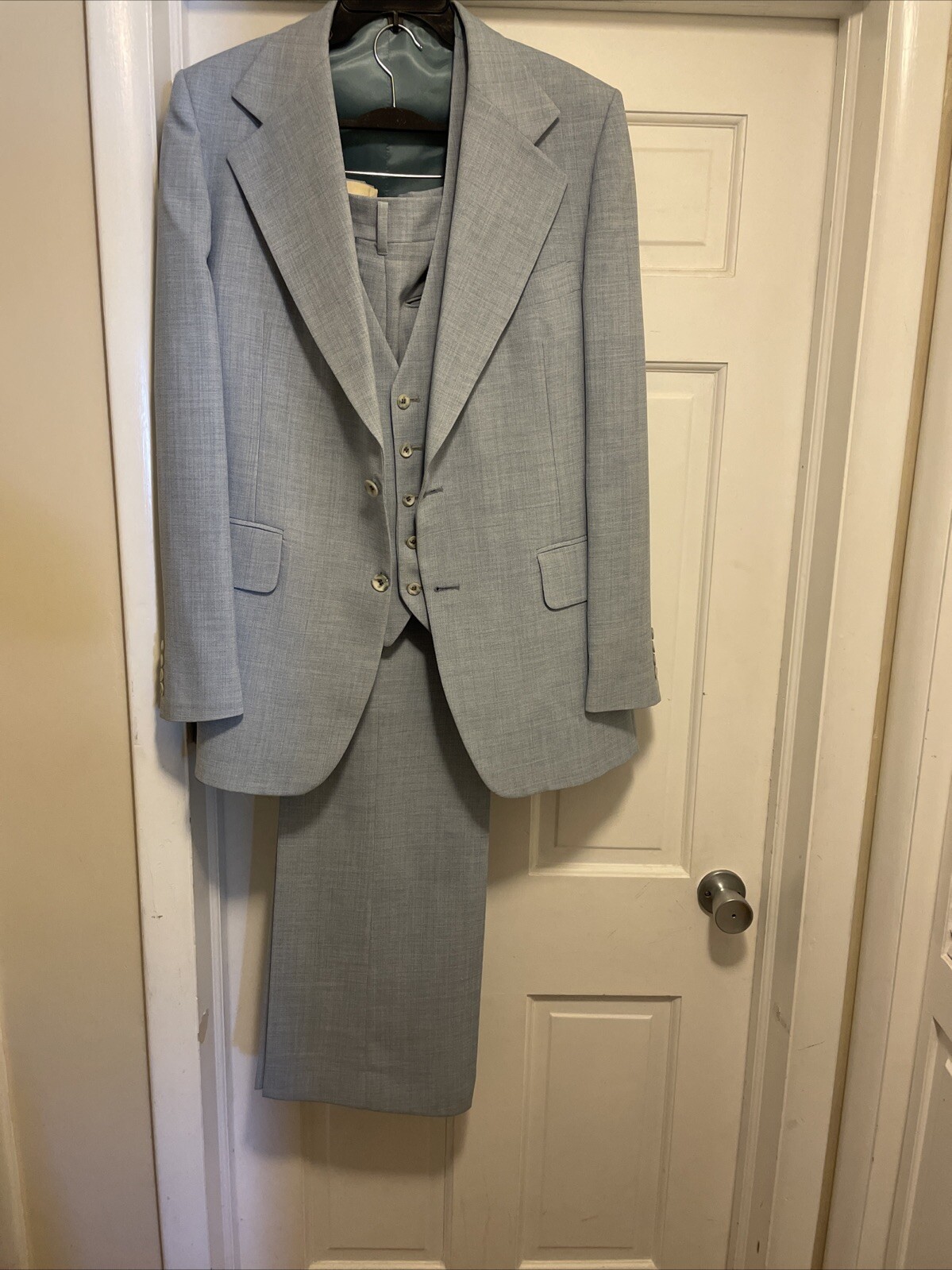 Vintage 70's Johnny Carson 3 pc Polyester Blue Suit SzJacket 38-40 Pants 35/33