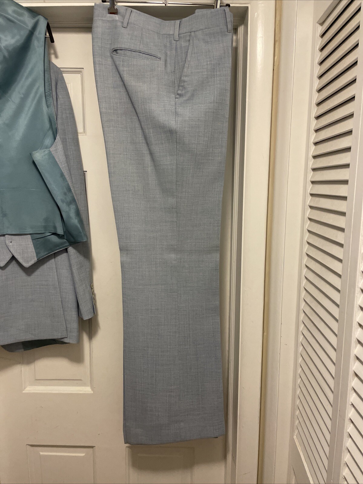 как выглядит Vintage 70s Johnny Carson 3 pc Polyester Blue Suit SzJacket 38-40 Pants 35/33 фото